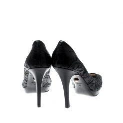 Made from luxurious leather with a subtle embroidery all over, these pumps add an edge to your personality. This pair from the house of Versace is just what you need to take your style quotient a few notches higher. Make a confident style statement when you go out wearing these cool black, peep-toe pumps.
