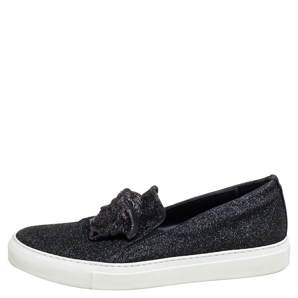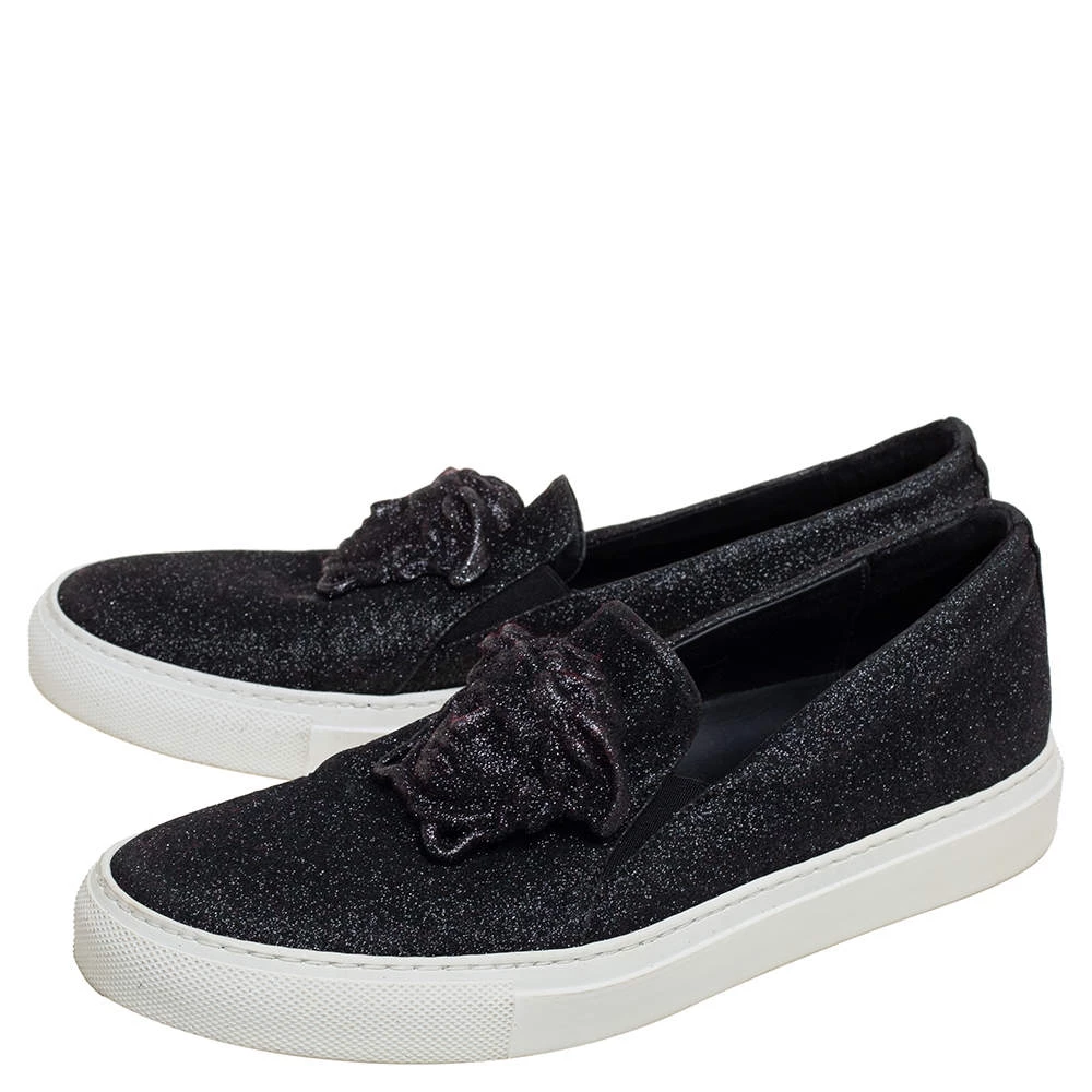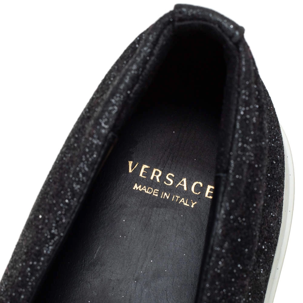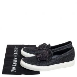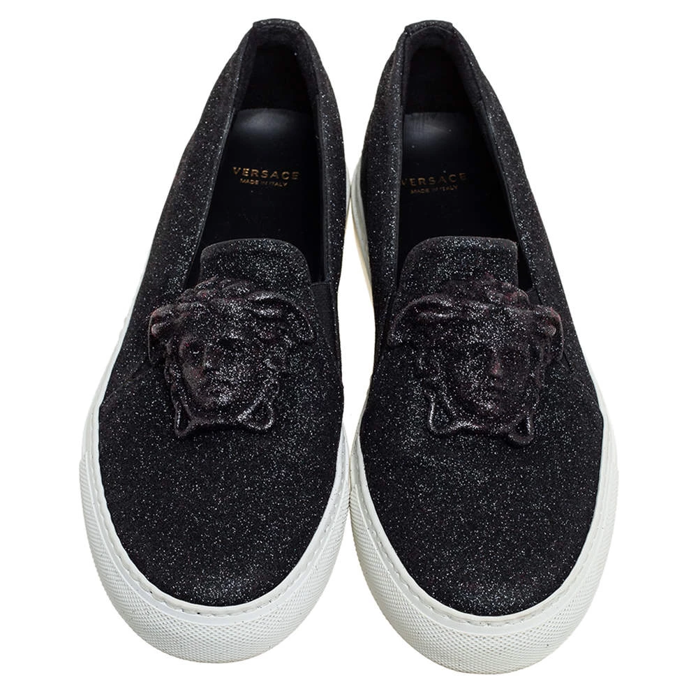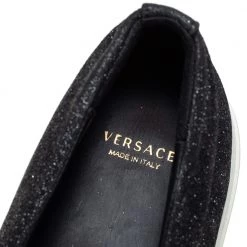 Sneakers are sought-after for reasons like comfort, ease, and casual style. These Versace ones fit right in as they are stylish and snug. They come crafted from black glitter into a design of elastic panels and the Medusa logo on the front.