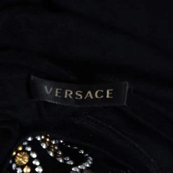 Break the monotony and say yes to this Versace T-shirt that offers oodles of style. It is made of jersey fabric and detailed with an embellished logo on the front. It comes with a round neckline and short sleeves and is sure to lend you a great fit.