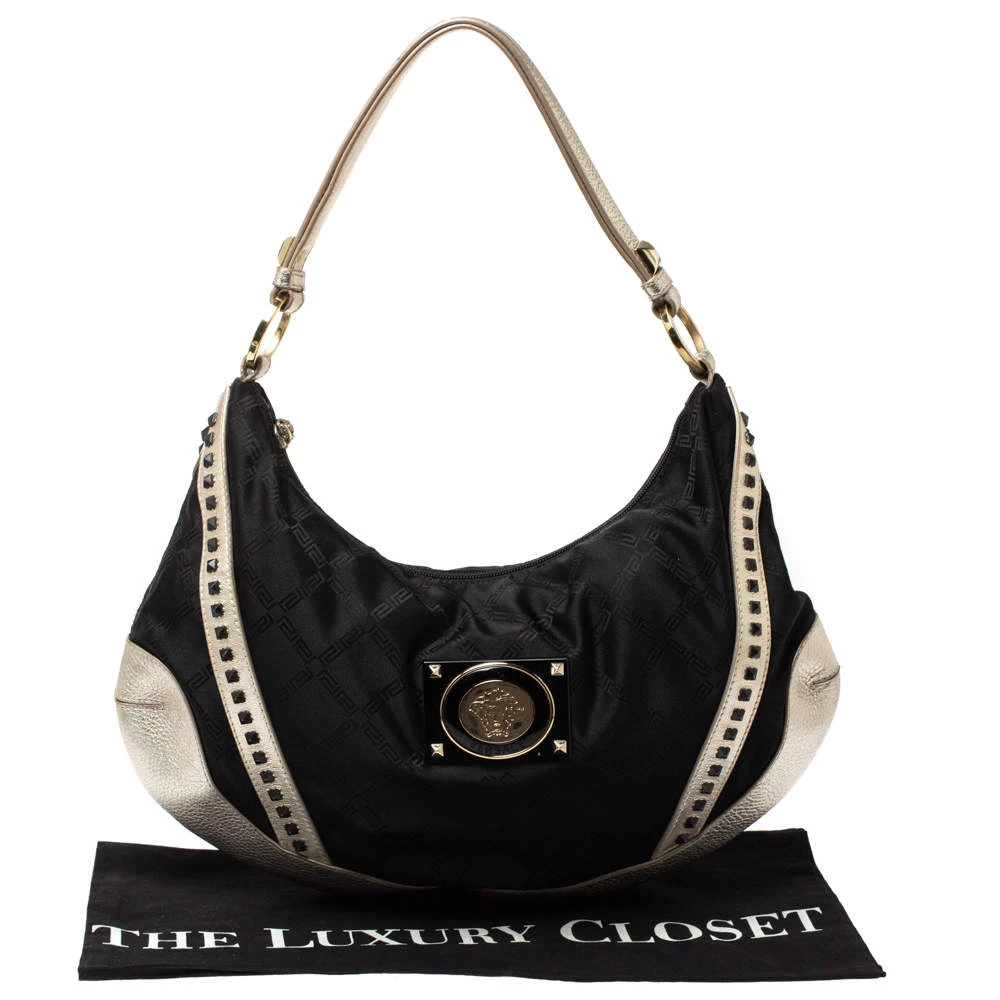 Simple yet luxurious in design, this hobo from Versace definitely needs to be in your closet. The hobo is crafted from nylon as well as leather and spells creative excellence. It features a single handle and a spacious satin interior that will hold all your daily essentials.