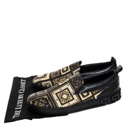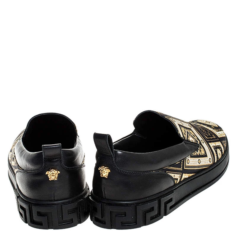 Look stylish in your casual looks with these Versace sneakers. Constructed in satin and leather, these shoes feature round toes and eye-catching prints. They are set on highly comfortable soles to assist you every day.
