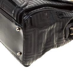 This bold and eye-catching Versace satchel is sure to make heads turn. Crafted from black quilted patent leather, the bag is accented with a gold-tone Gianni Versace Couture plate at the front. It features dual top braided handles and a top closure that opens to a satin lined interior that will hold all your necessities. The bag is complete with a flap pocket to the front and a slip pocket at the back.