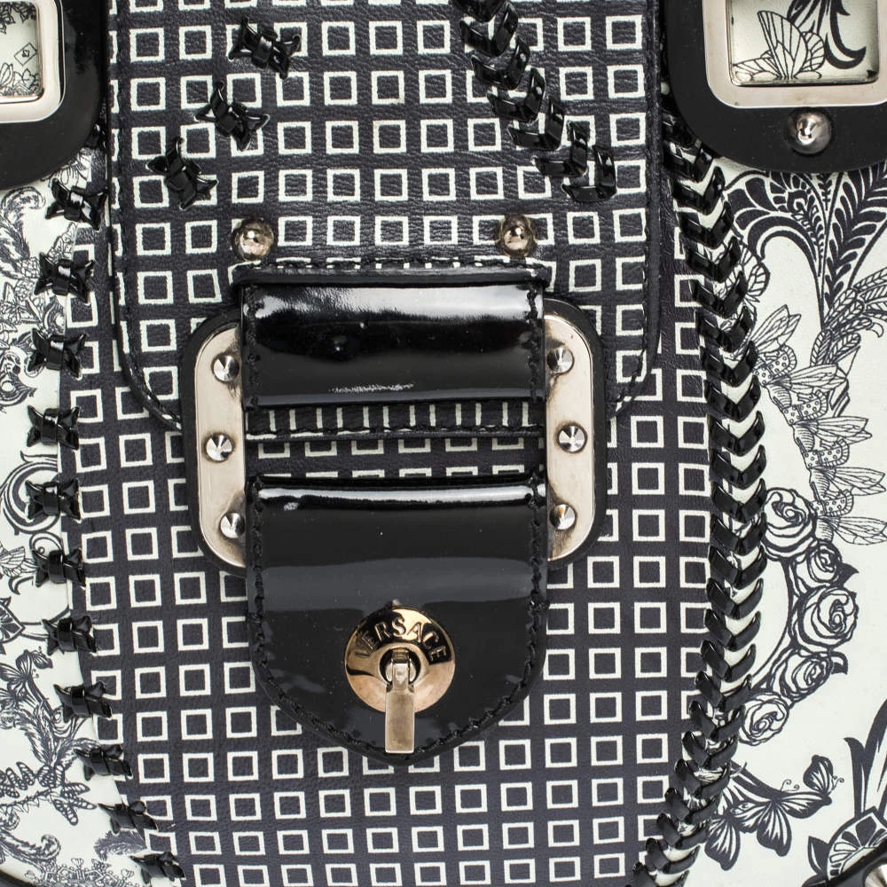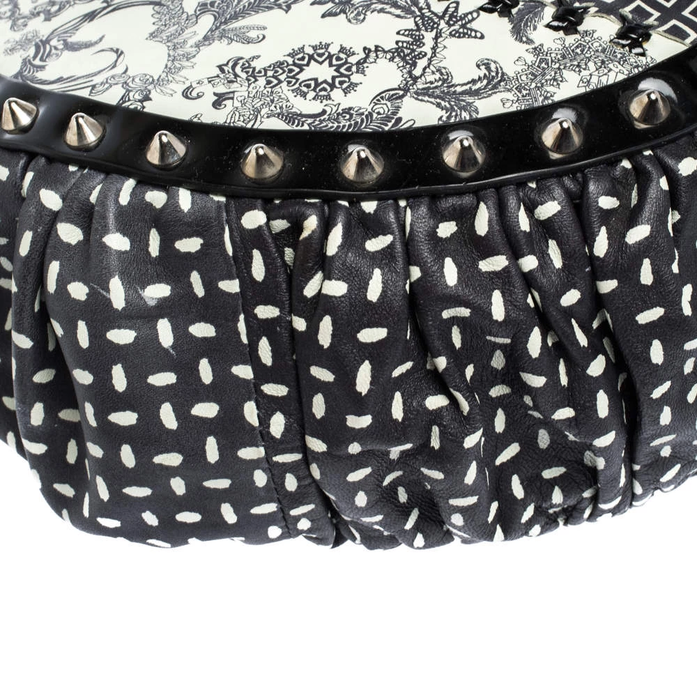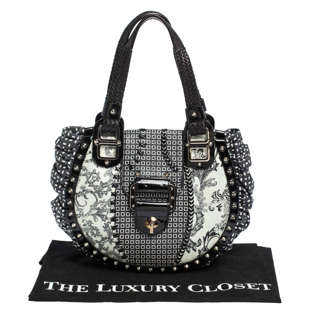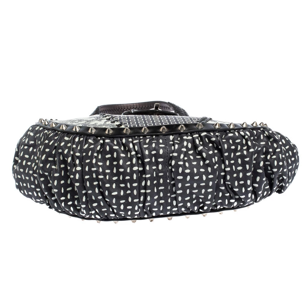 Elevate your everyday look by carrying this sleek handbag from Versace. Dress up like a style icon when you pair this black & green hobo with your outfits. Crafted from ruffled printed leather, it has a front flap, dual handles, silver-tone hardware detailing and studs and a spacious satin-lined interior with a zip pocket.