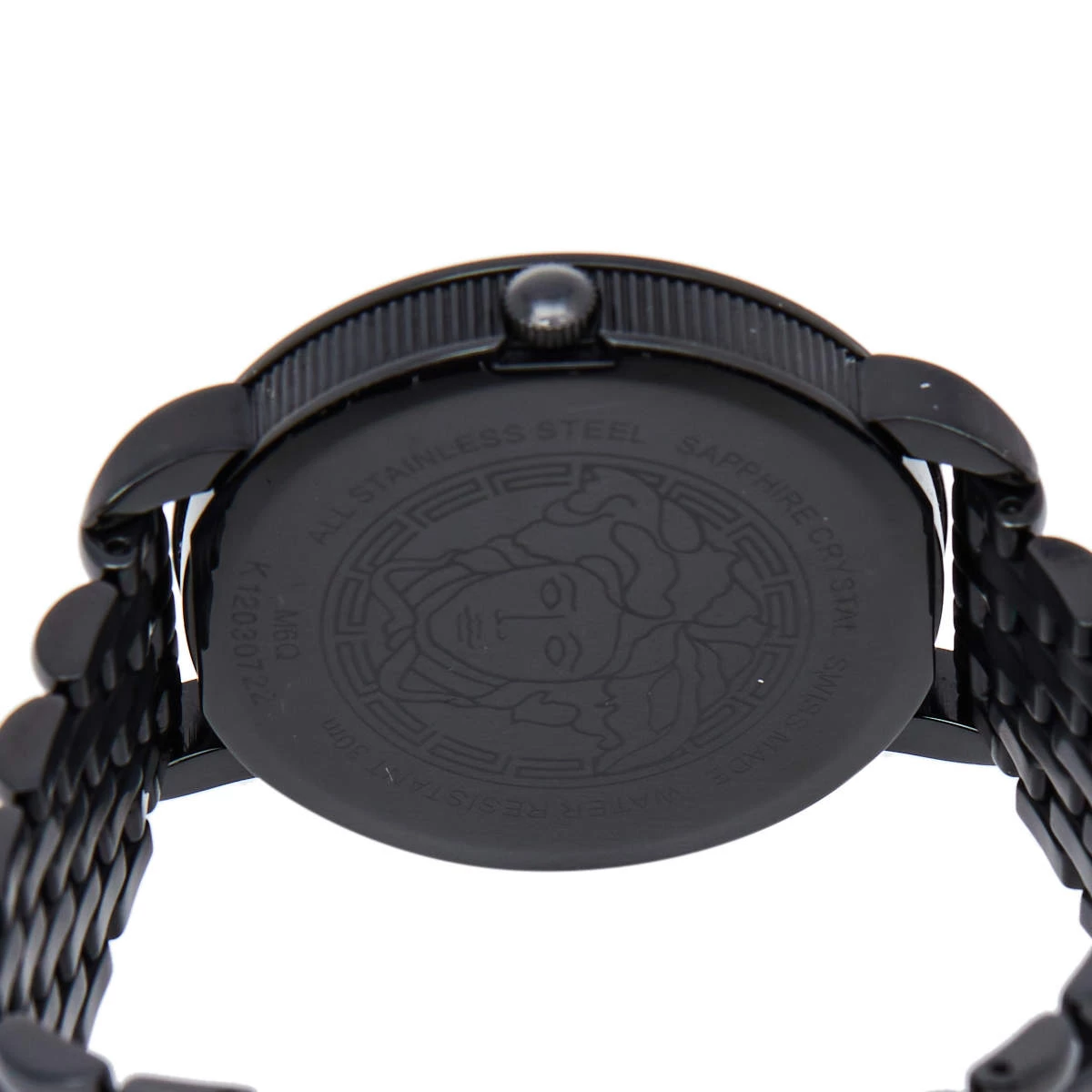 Creations from Versace promise a grand style with everything eye-catching and this Krios watch from the label demonstrates just that. The watch has an ion-plated steel case and a link bracelet secured with a concealed clasp. It is graced with a stylish hobnail bezel and fitted within is a blue dial. The dial is graced with a notable Versace Medusa logo along with index as well as Roman numeral hour markers and two hands. This quartz watch has a water resistance of up to 30 meters and will look gorgeous with your evening ensembles.