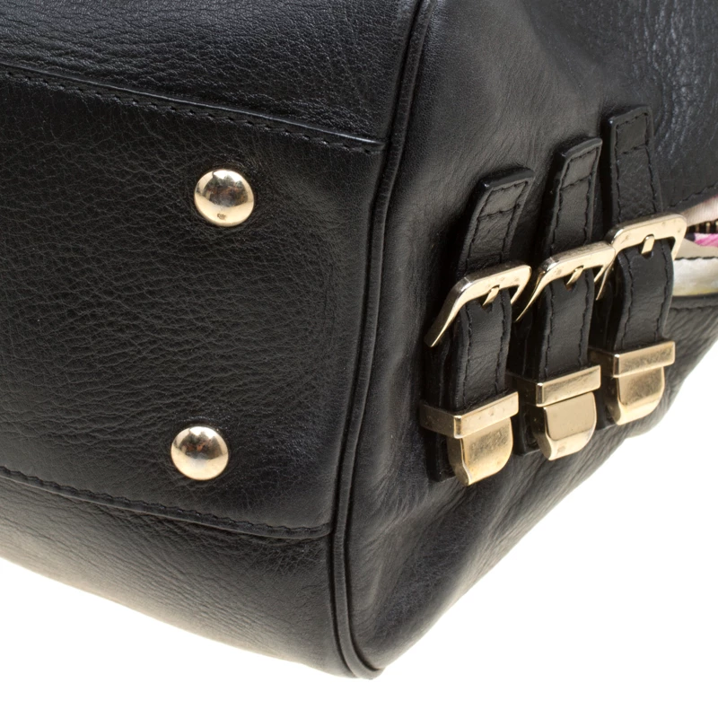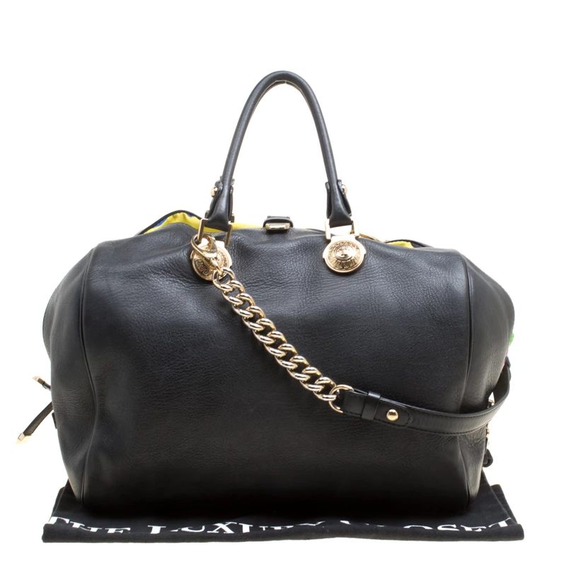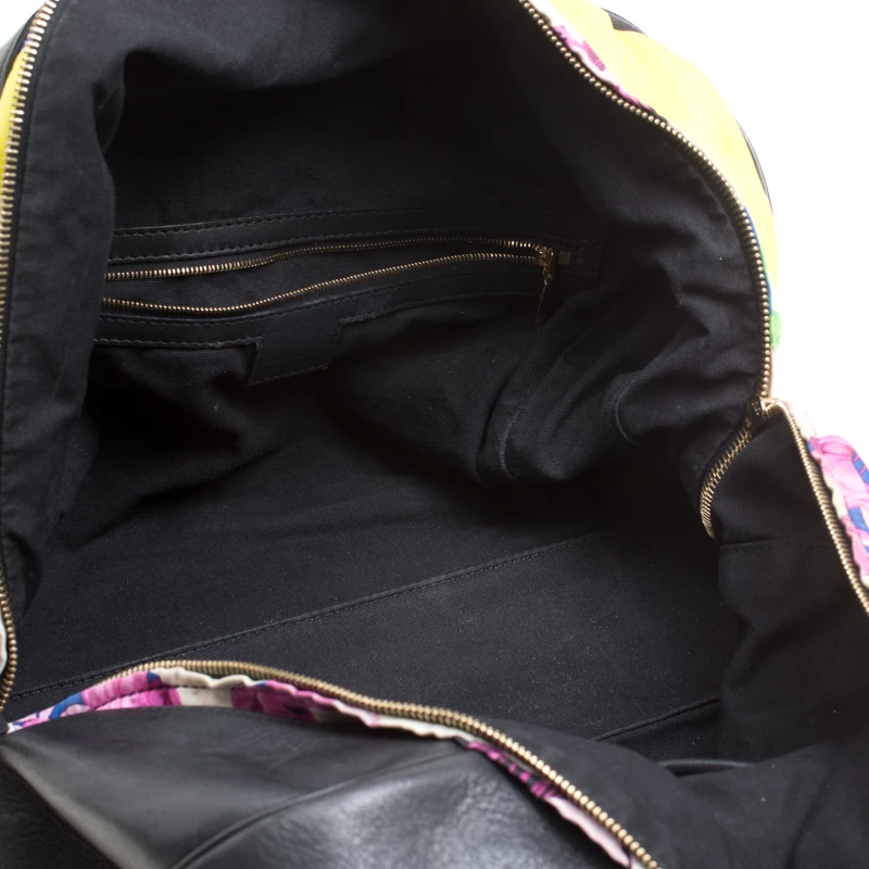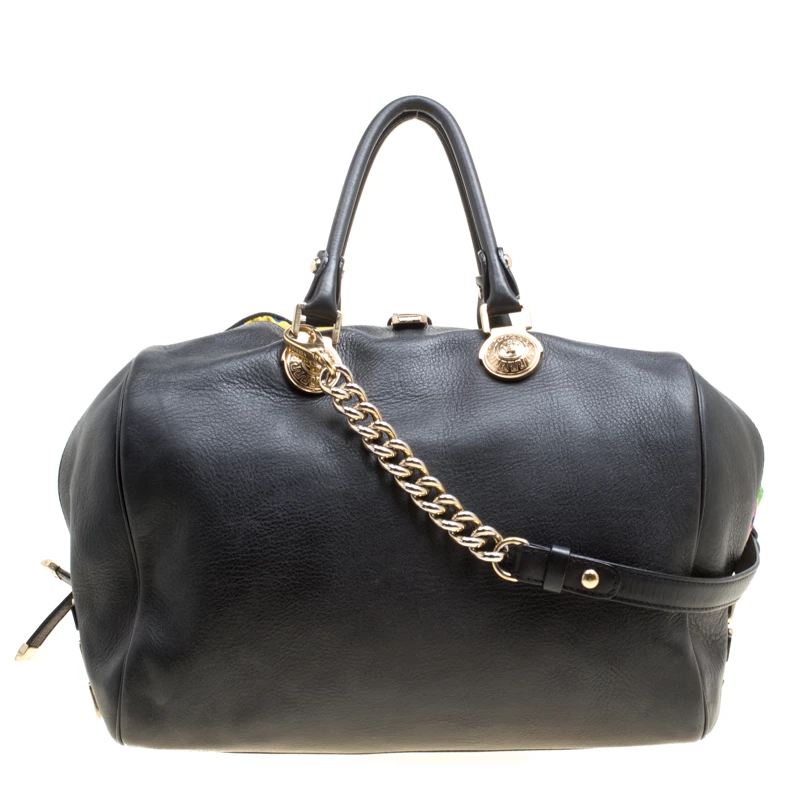 The dream to own a classy and stylish bag comes alive with this fabulous one from Versace. The black creation is crafted from leather and floral printed fabric and features dual top handles, a detachable chain and leather shoulder strap, gold-tone signature Medusa medallions, buckled straps on the sides and a top zip closure that opens to a spacious interior that can easily carry all your daily essentials. Grab this lovely creation right away!