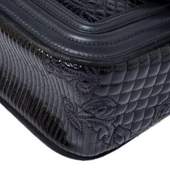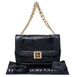 Embrace the prevailing trends in style with this chic bag by Versace. An example of luxe fashion, this beautifully crafted bag comes with a spacious nylon interior. Made in a leather and patent leather body, this bag can effortlessly be fashioned with both off-duty and formal looks.