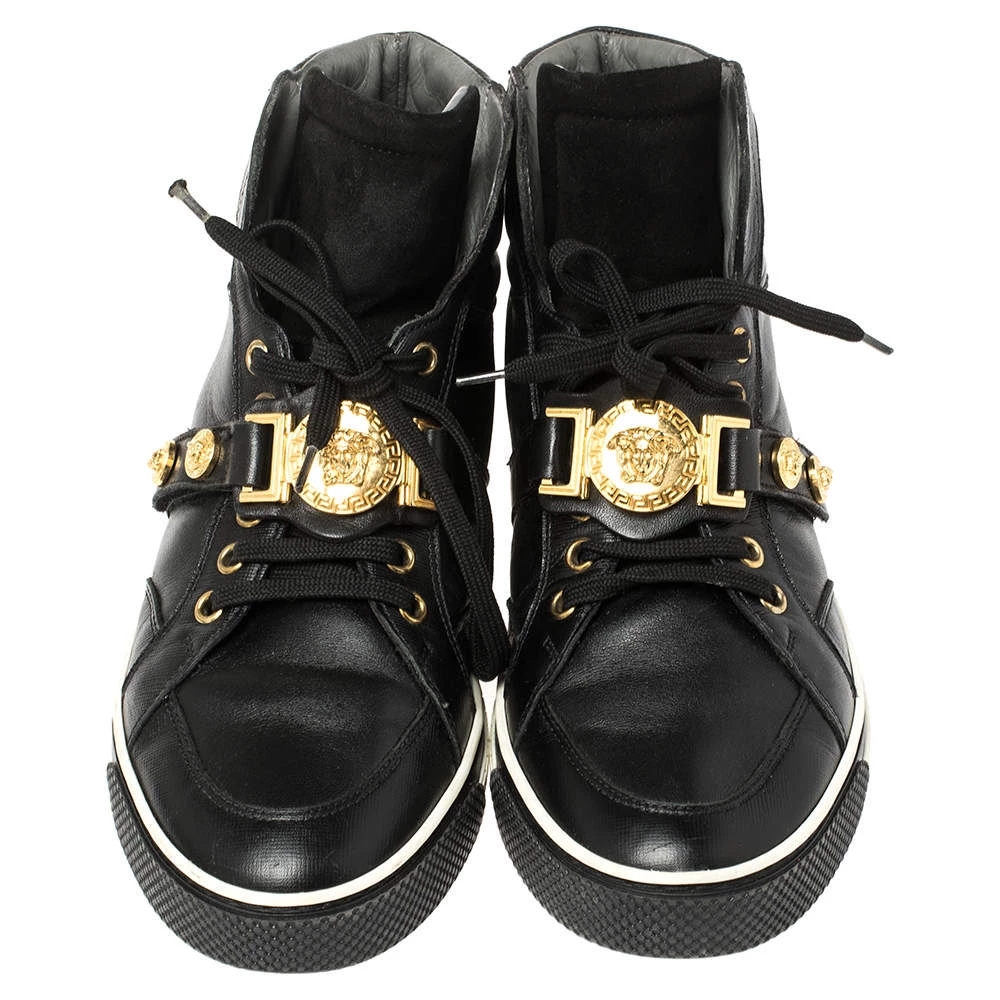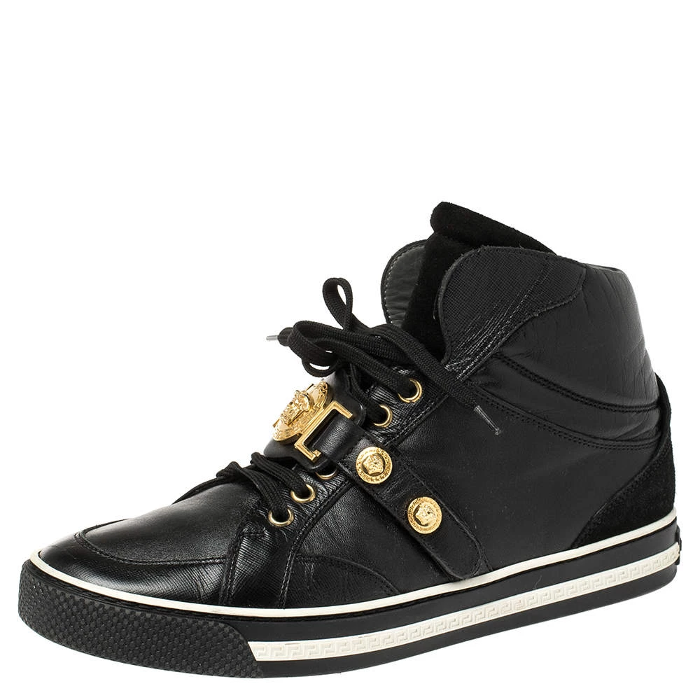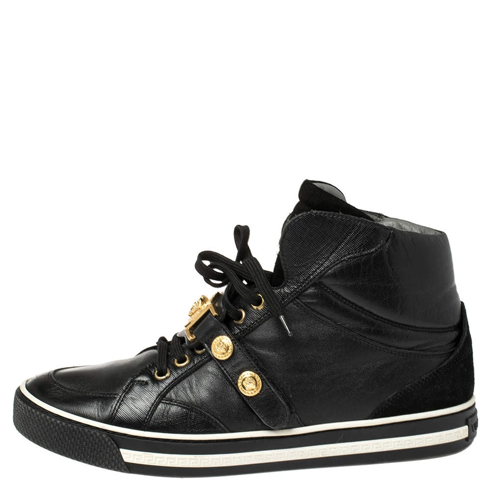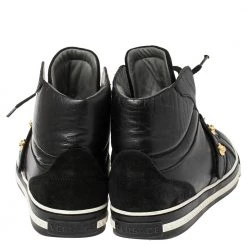 Versace Black Leather And Suede Medusa Strap High Top Sneakers Size 40 For Women