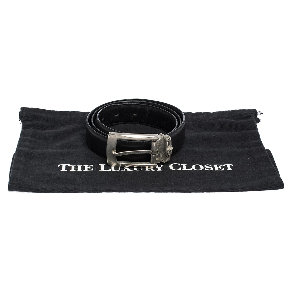 With its smart and luxurious look that will never go out of fashion, this stunning Versace belt is an elegant piece of accessory that you must own. Crafted in black leather, this belt features a silver-tone buckle at the front which stands out and makes a statement.