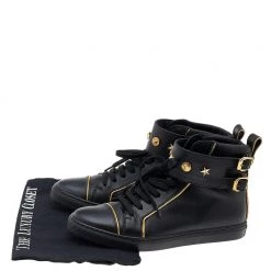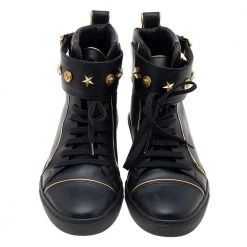 Brimming with fabulous details, these Versace sneakers are crafted from leather and suede into a high-top silhouette and feature lace-up vamps, gold-tone studs, and the Medusa logo. Comfortable soles and a trendy appeal make these sneakers a must-buy.