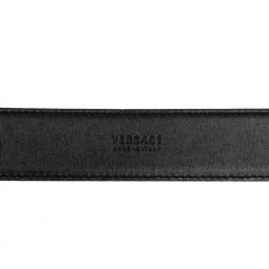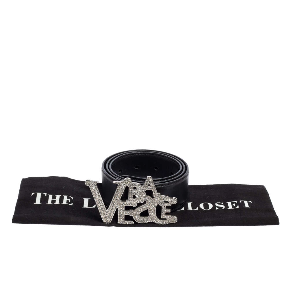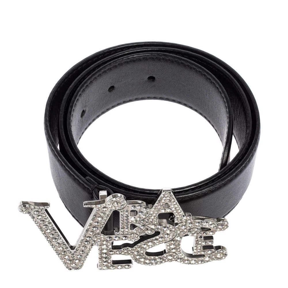 Versace has adorned this black belt with a unique logo buckle embellished with crystals. Crafted from leather in Italy, style your jeans and trousers with this attractive belt.