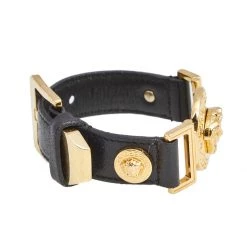 Featuring the iconic Medusa Icon logo in gold-tone metal, this Versace bracelet for women is bold and impressive. The black bracelet’s strap is made of leather and secured with a buckle fastening.