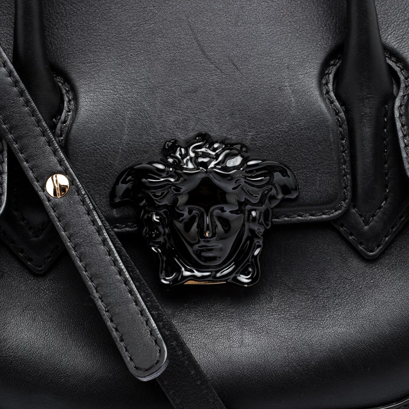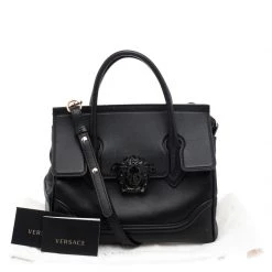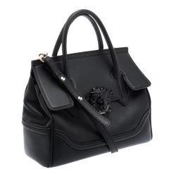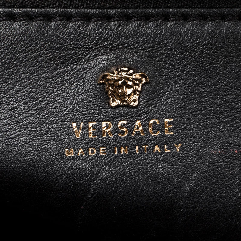 This Pallazo Empire tote from Versace is a fabulous piece. The bag comes in a luxurious black exterior made from leather and designed with their signature Medusa motif on the flap that reveals a spacious canvas interior. It features dual top handles, a removable shoulder strap and protective feet at the bottom. High on appeal and effortlessly stylish, this tote deserves to be in your arms.