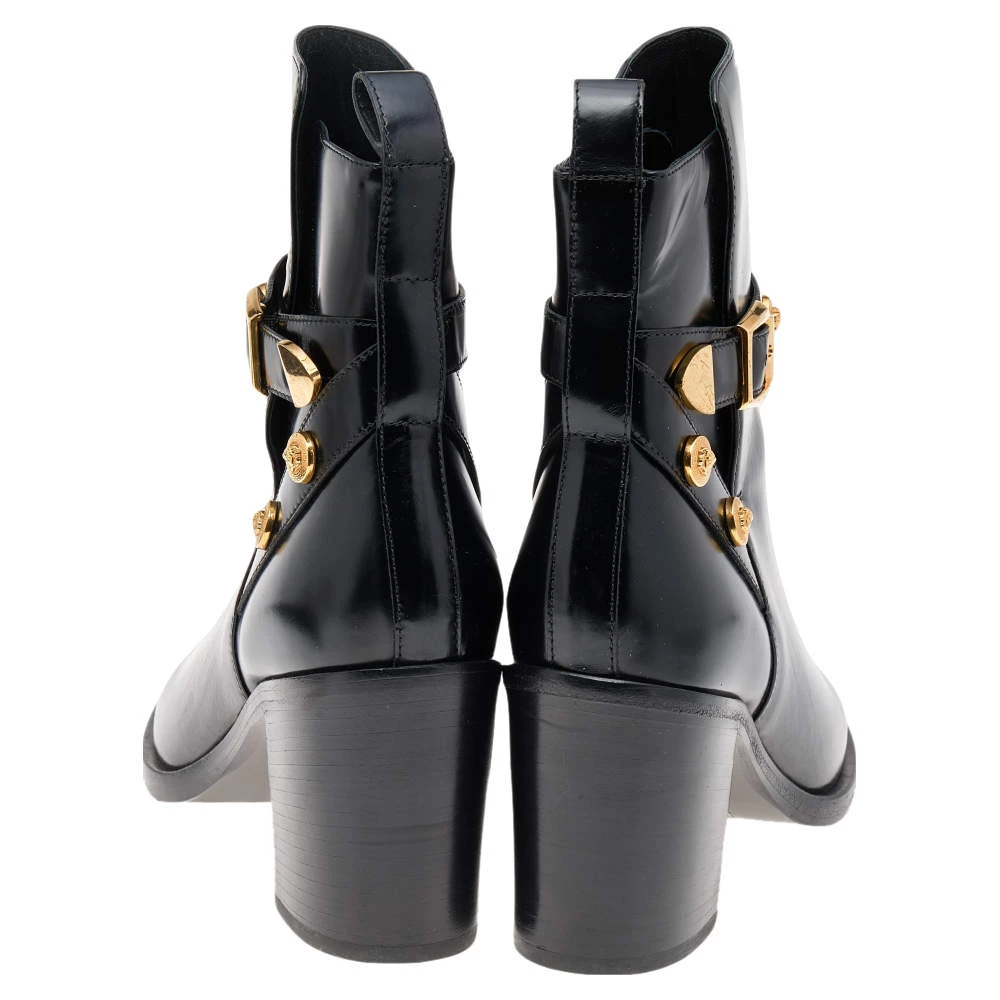 A rock-chic flair and a sophisticated appeal characterize these stunning Versace boots. Crafted using quality materials, they will add an opulent charm to your look and complement many looks that you would want to create.