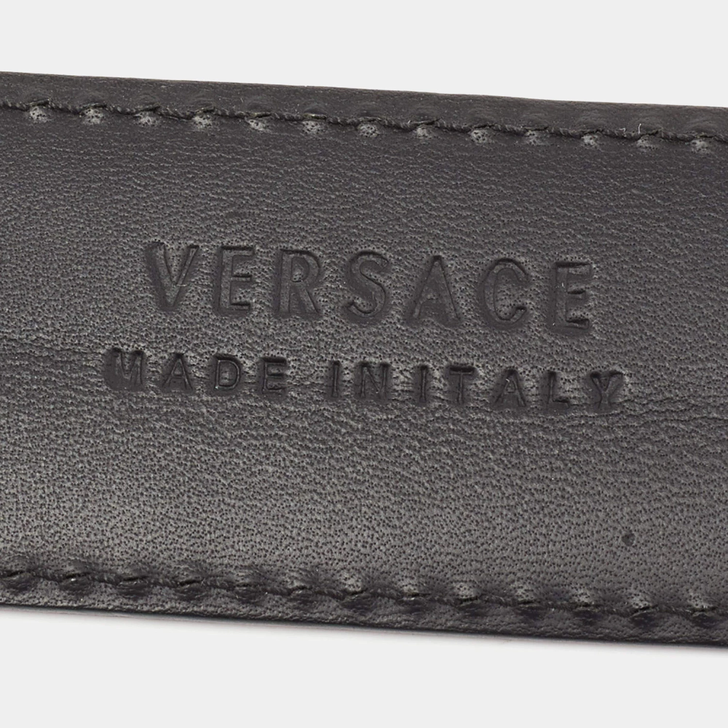 Accessorise right with this belt from Versace. It is made from classic black leather and has a sleek design with a gold-tone metal Medusa buckle at the front.