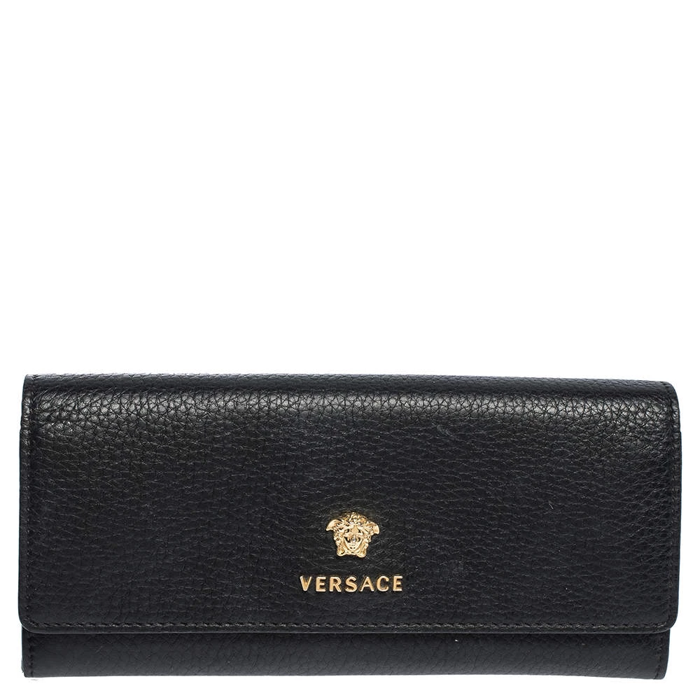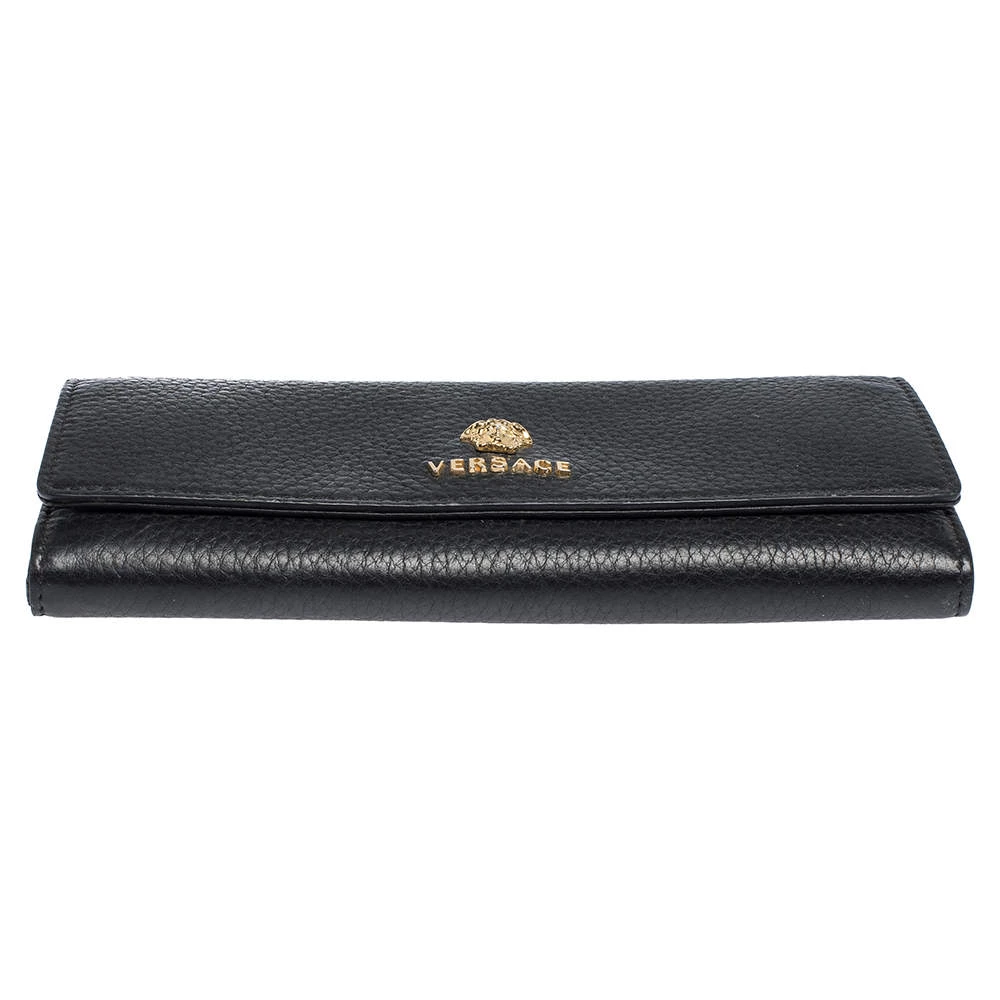 A beautiful wallet for stylish women, this Versace continental wallet is perfect to carry along with you while you step out to run errands. Crafted in black leather, this wallet has enough slots and compartments to neatly hold your necessities.