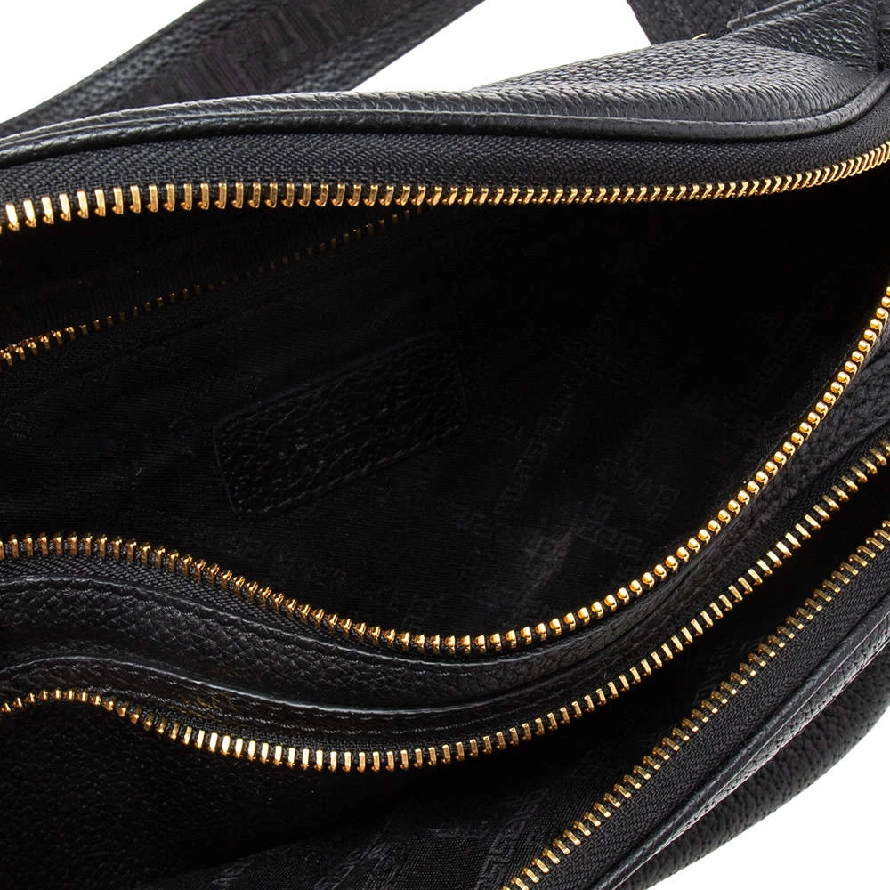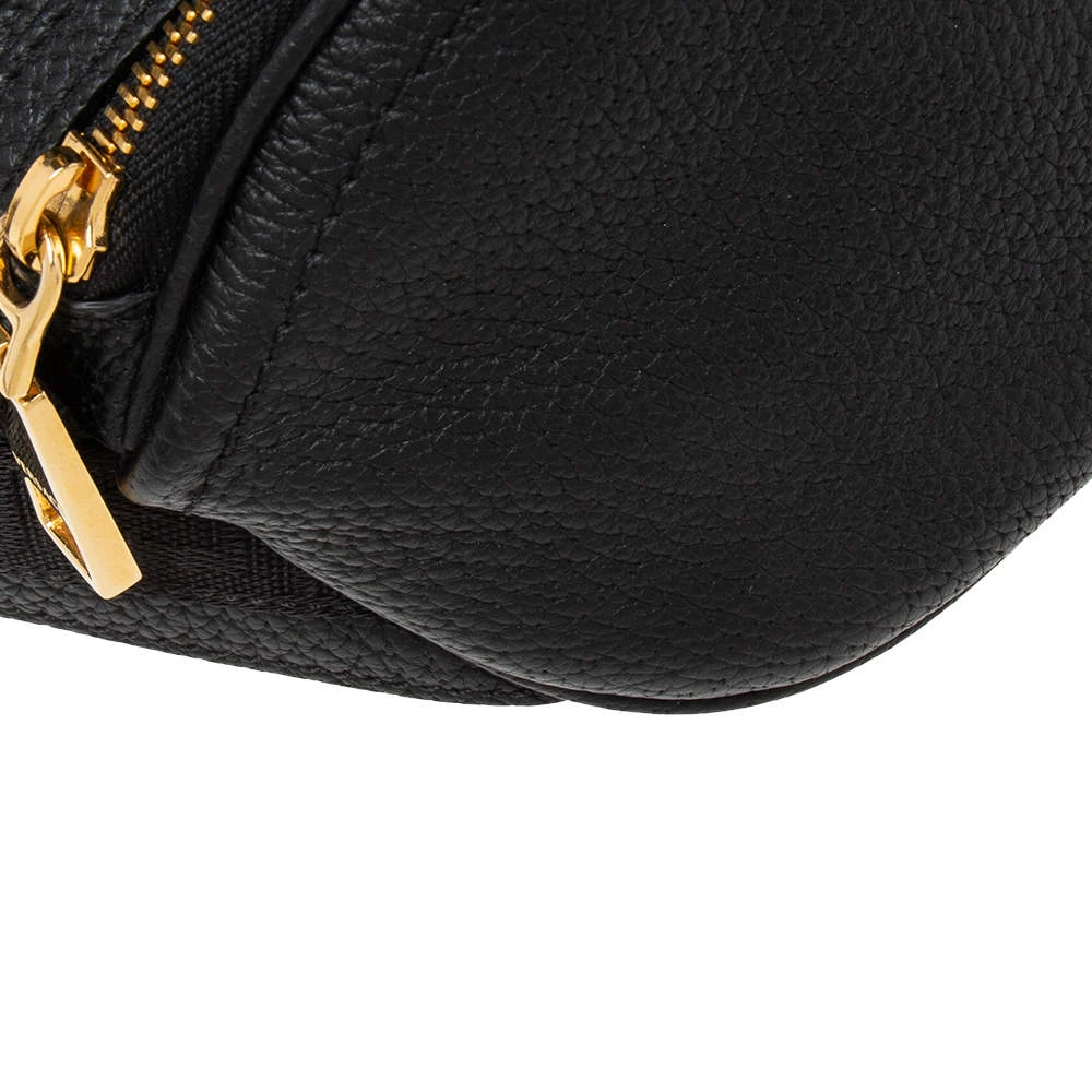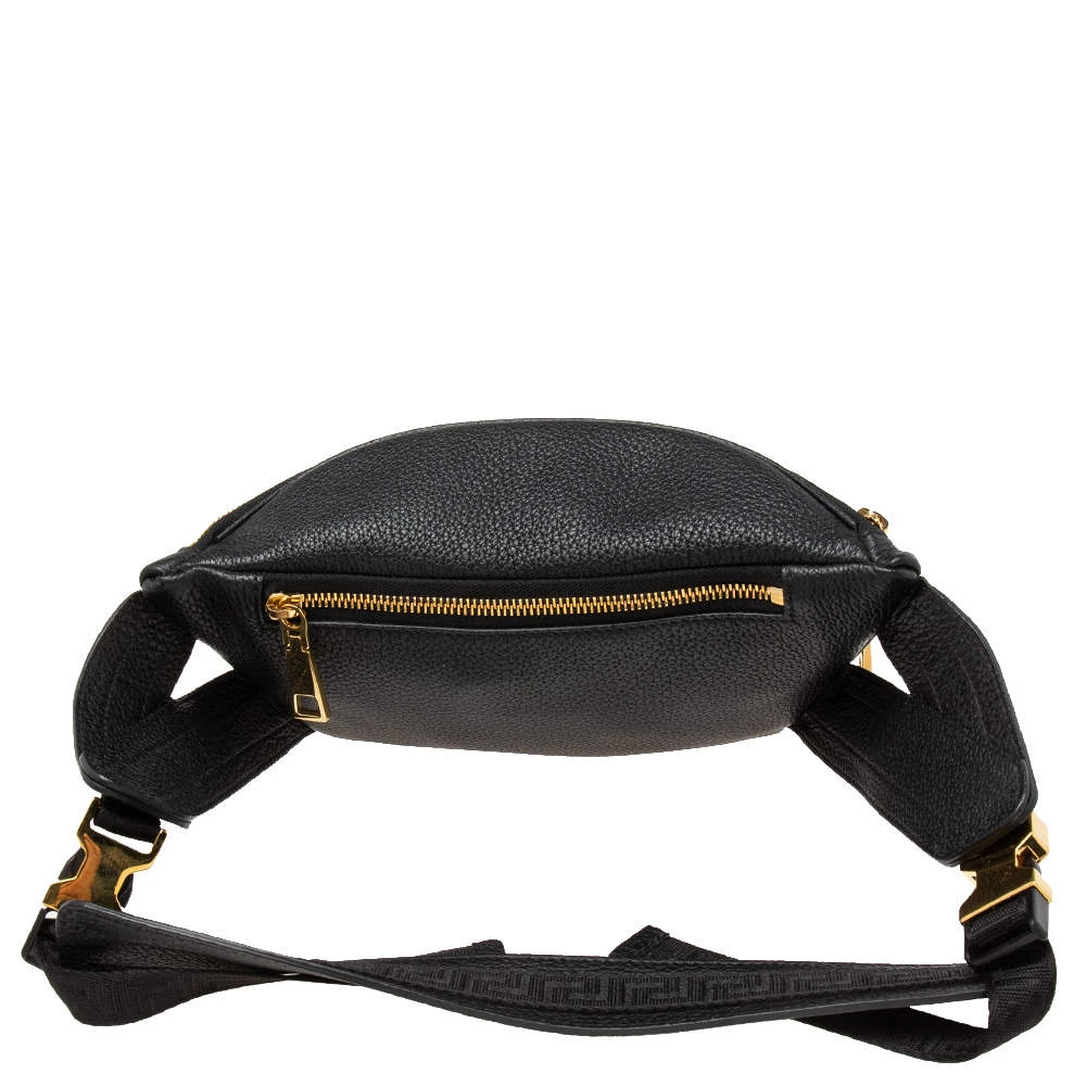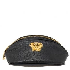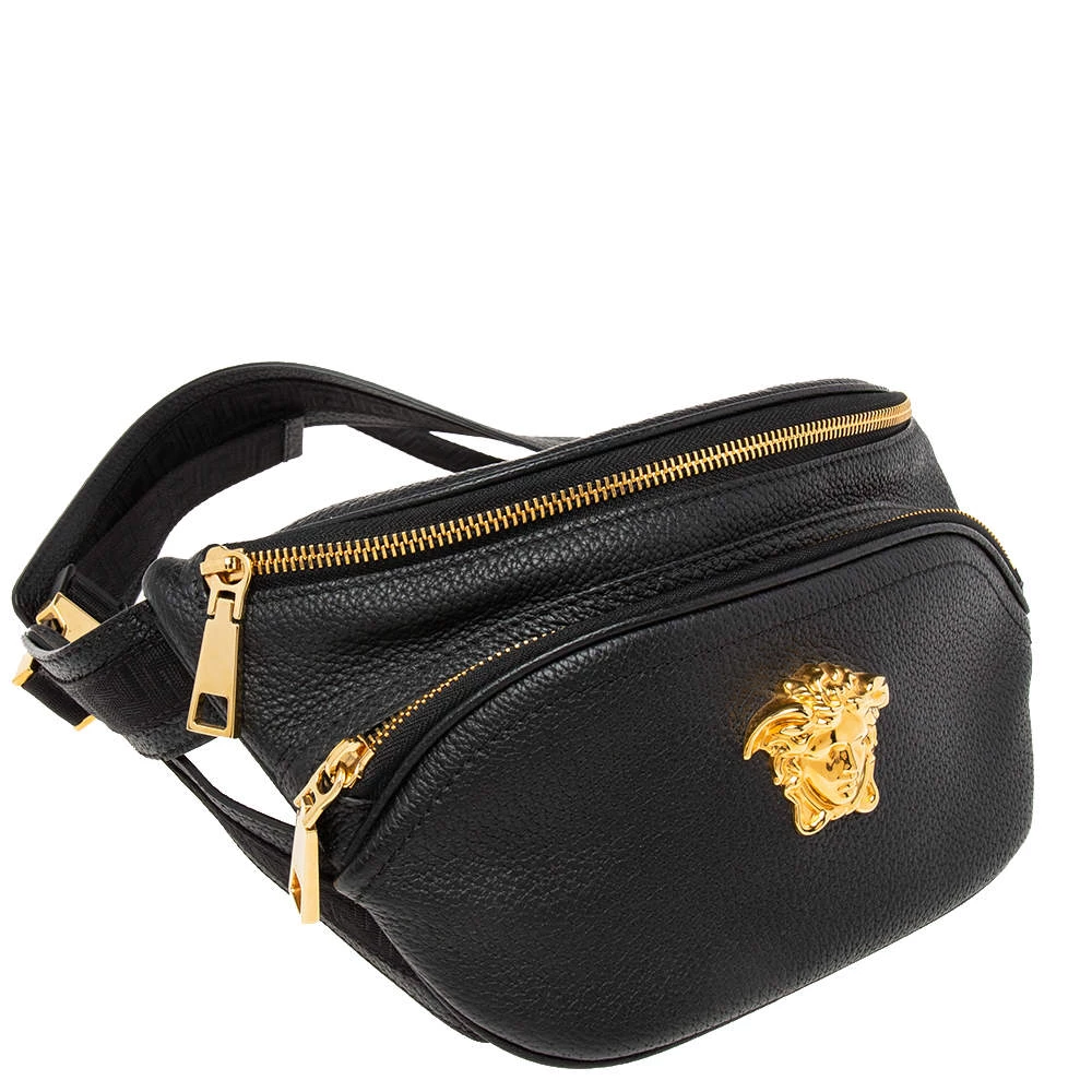 This belt bag from Versace is indeed functional yet fashionable. It is crafted from black leather and displays the Medusa head on the front in gold-tone hardware. It is completed with double zip pockets on the exterior for extra space. Wear it over jumpsuits for an uber-chic look.