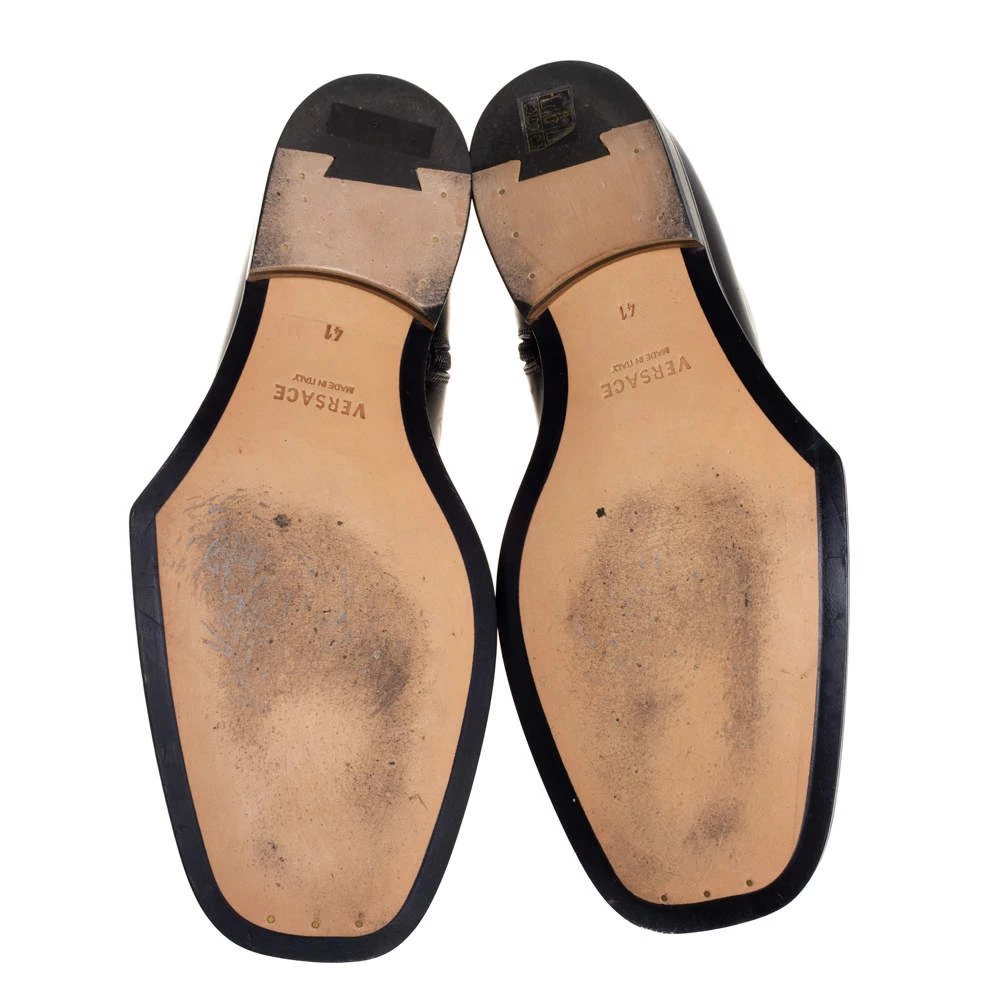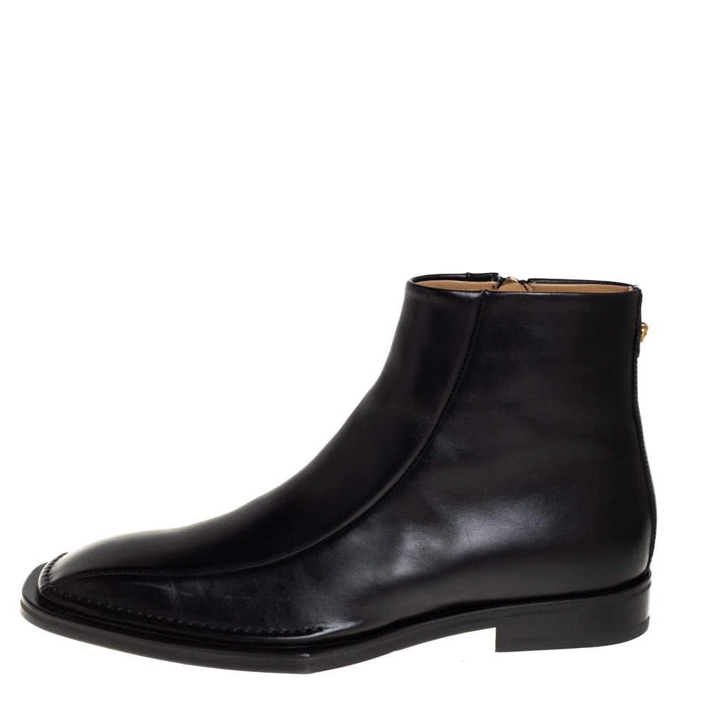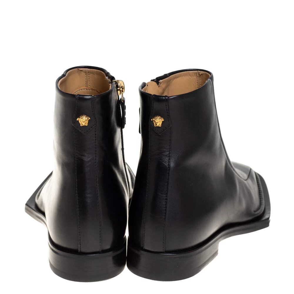 Celebrating the fusion of fine craftsmanship and classic fashion, these Versace ankle boots are absolutely worth the splurge. They are well-crafted with leather and detailed with Medusa motifs at the back and side zippers. Comfortable insoles ensure ease at every step.