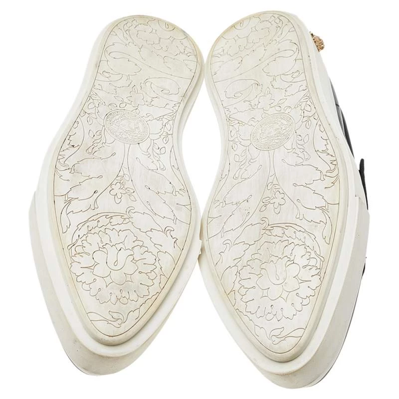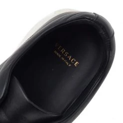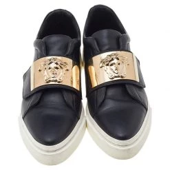 These sneakers from Versace, with their signature beauty and unique style, have become the new trend in footwear fashion. These low-top sneakers are created using black leather with a gold-toned Medusa accent perched on the vamps. They are fitted with a velcro strap for closure. Gain style and comfort at the same time with these sneakers.