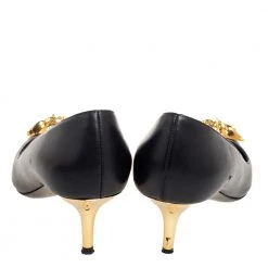 Bring signature charm and skill to your feet with these beautiful pumps from the House of Versace. They are decorated with a gold-tone Medusa Head motif on the black leather exterior. They showcase pointed toes, a slip-on style, and 6 cm heels. Pair them with your attire for a classy touch.