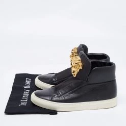 Sneakers are sought-after for reasons like comfort, ease, and casual style. These Versace ones fit right in as they are stylish and snug. They come crafted from black leather into a design of elastic panels and the Medusa logo on the front.
