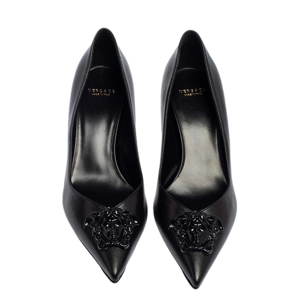 Treat your feet to the best footwear by choosing these fine pumps from Versace! The black pumps have been crafted in Italy using leather. They are designed with the Medusa motif on the pointed toes and 6.5 cm heels.