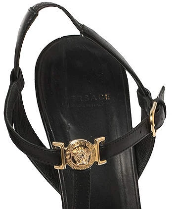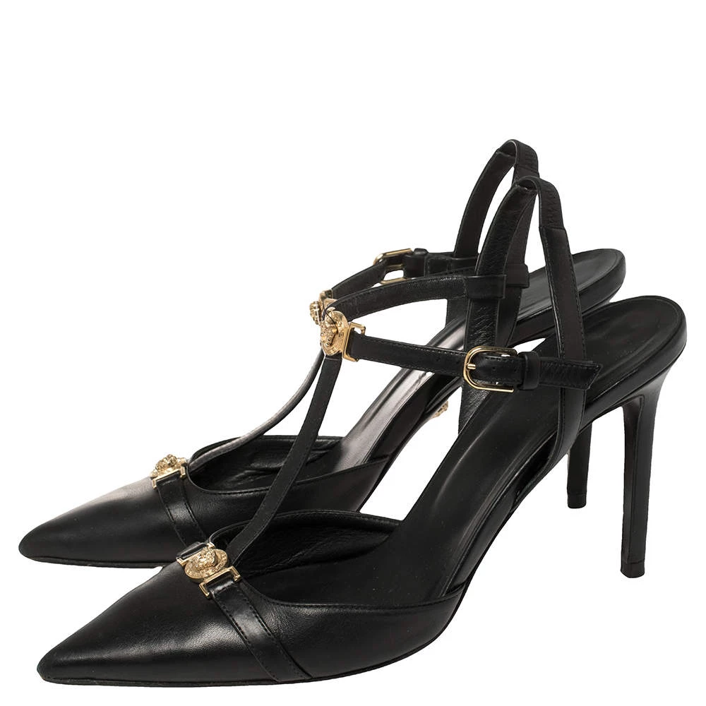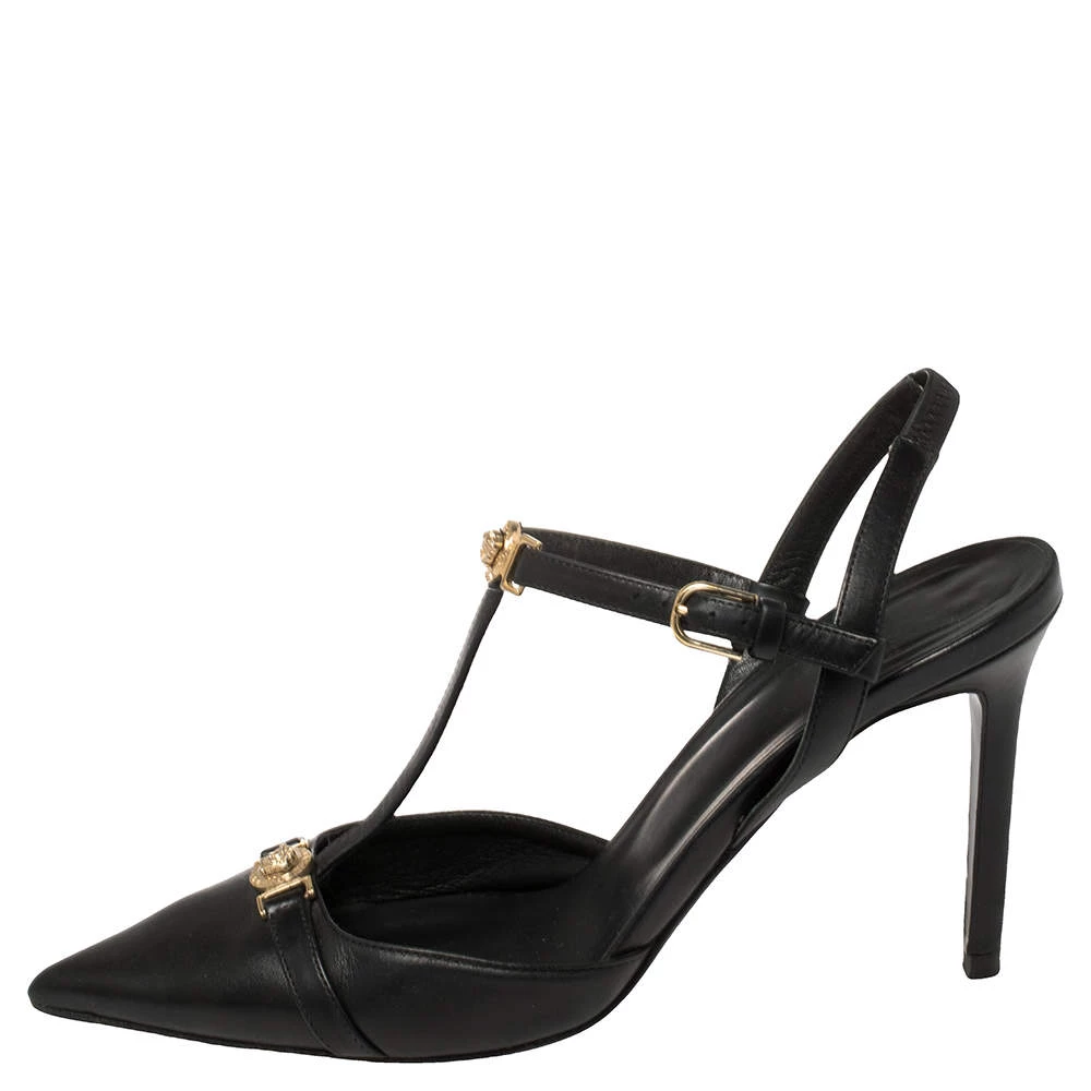 Treat your feet to this gorgeous pair of pumps from Versace. Crafted from leather, this pair features Medusa motifs, pointed toes, sleek 9 cm heels to lift you, and buckle ankle straps for a secured fit. The insoles are lined with leather to offer maximum ease.