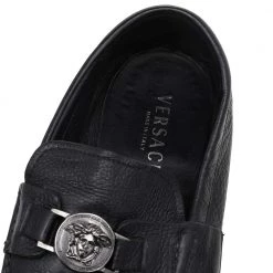 Precise stitching, use of quality leather, and a calculated shape led to the final result of this pair of loafers. The shoes are by Versace, and this is evidently displayed with the Medusa detail on the uppers. The loafers are wrapped in comfort and style.