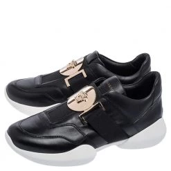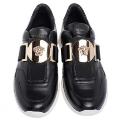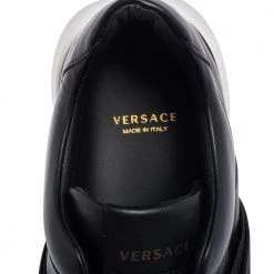 These sneakers from Versace, with their signature beauty and unique style, have become the new trend in footwear fashion. These low-top sneakers are created using black leather with a gold-toned Medusa accent perched on the vamps. Gain style and comfort at the same time with these sneakers.