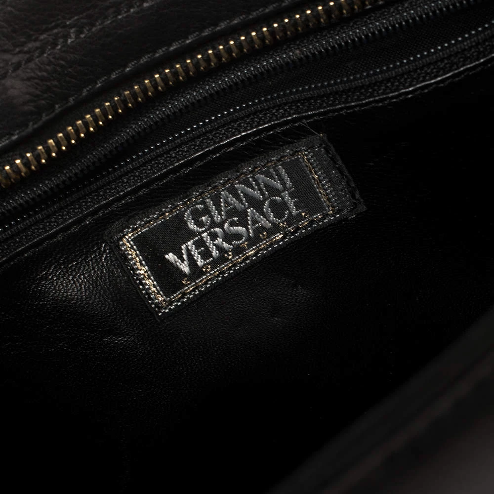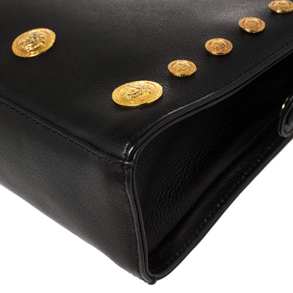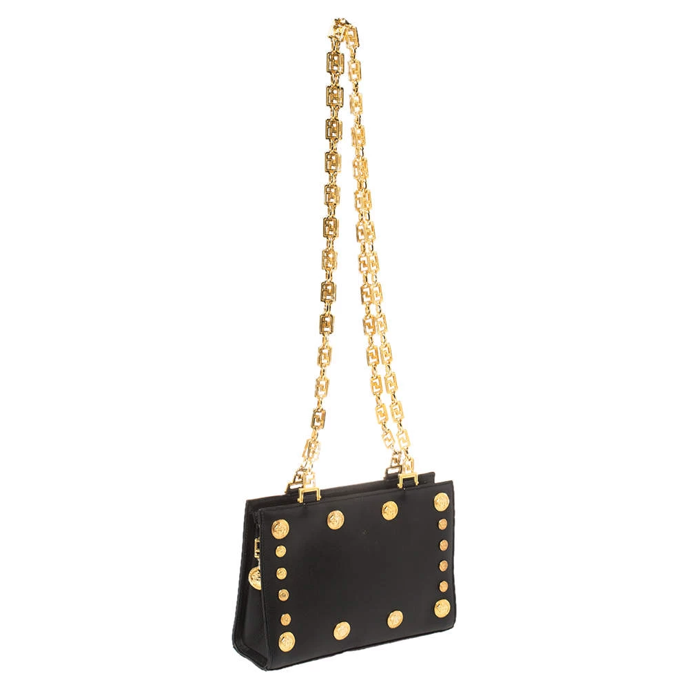 The Medusa shoulder bag by the iconic house of Versace is a statement-making piece. Made from quality leather, it features the iconic Medusa motif in gold-tone on the studs and stylish chain-link shoulder straps. The interior-lined interior is enclosed with a zipper.