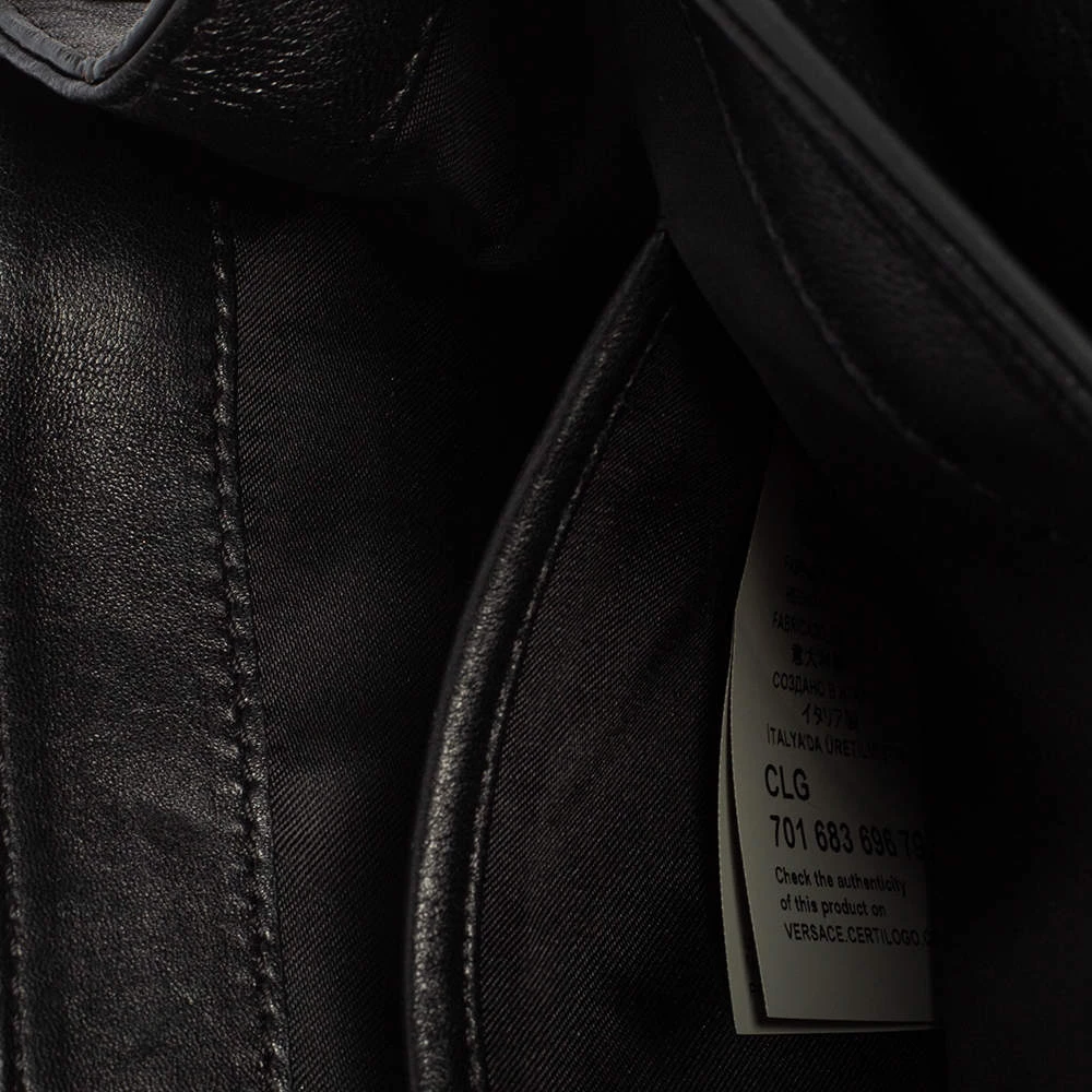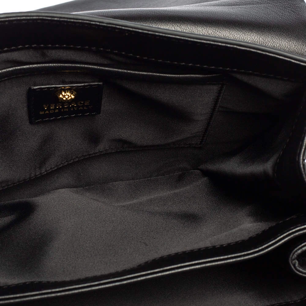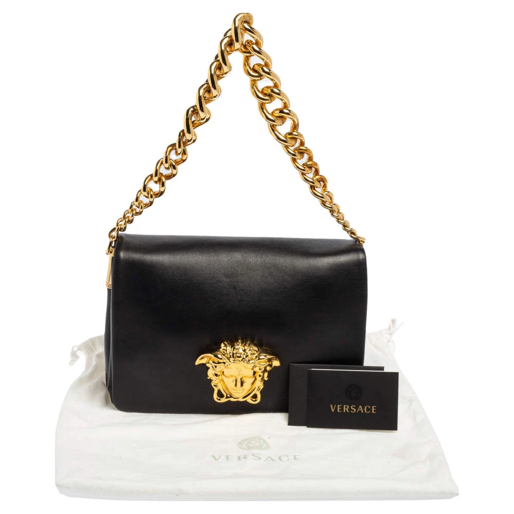 The Medusa Sultan bag designed by Versace encompasses beauty like never before. Structured in the most classy way, this bag made from black leather shows off a gold-toned Medusa motif embellished on the front flap. This skillfully created piece has the ability to transform your look in seconds. A chunky chain handle carries this bag.
