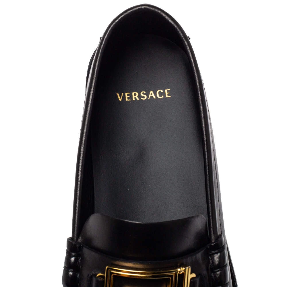 When comfort means luxury, we get these Versace loafers! Crafted from leather in a black shade, they are augmented with the label’s logo on the uppers. Comfortable insoles, neat stitches, and slight heels complete the pair.