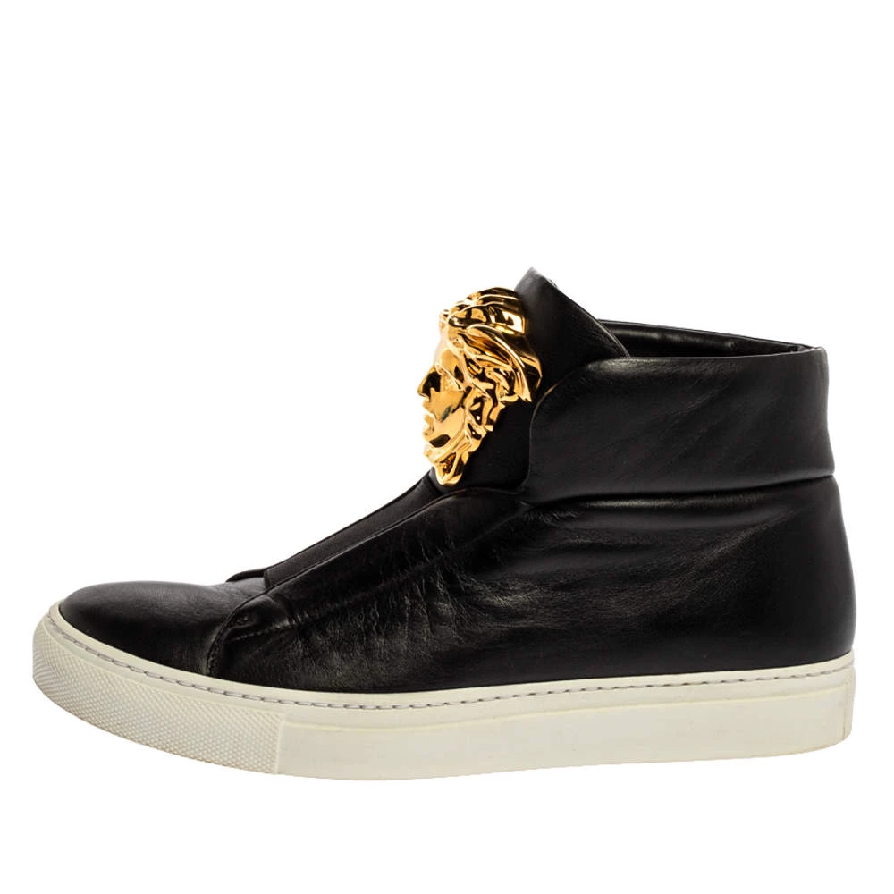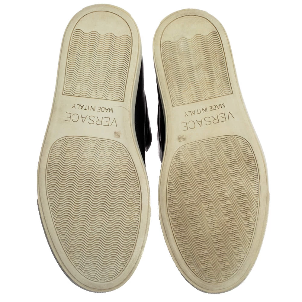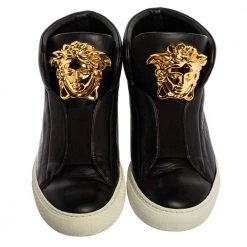 Sneakers are sought-after for reasons like comfort, ease, and casual style. These Versace ones fit right in as they are stylish and snug. They come crafted from black leather into a design of elastic panels and the Medusa logo on the front. They are finished with rubber soles.