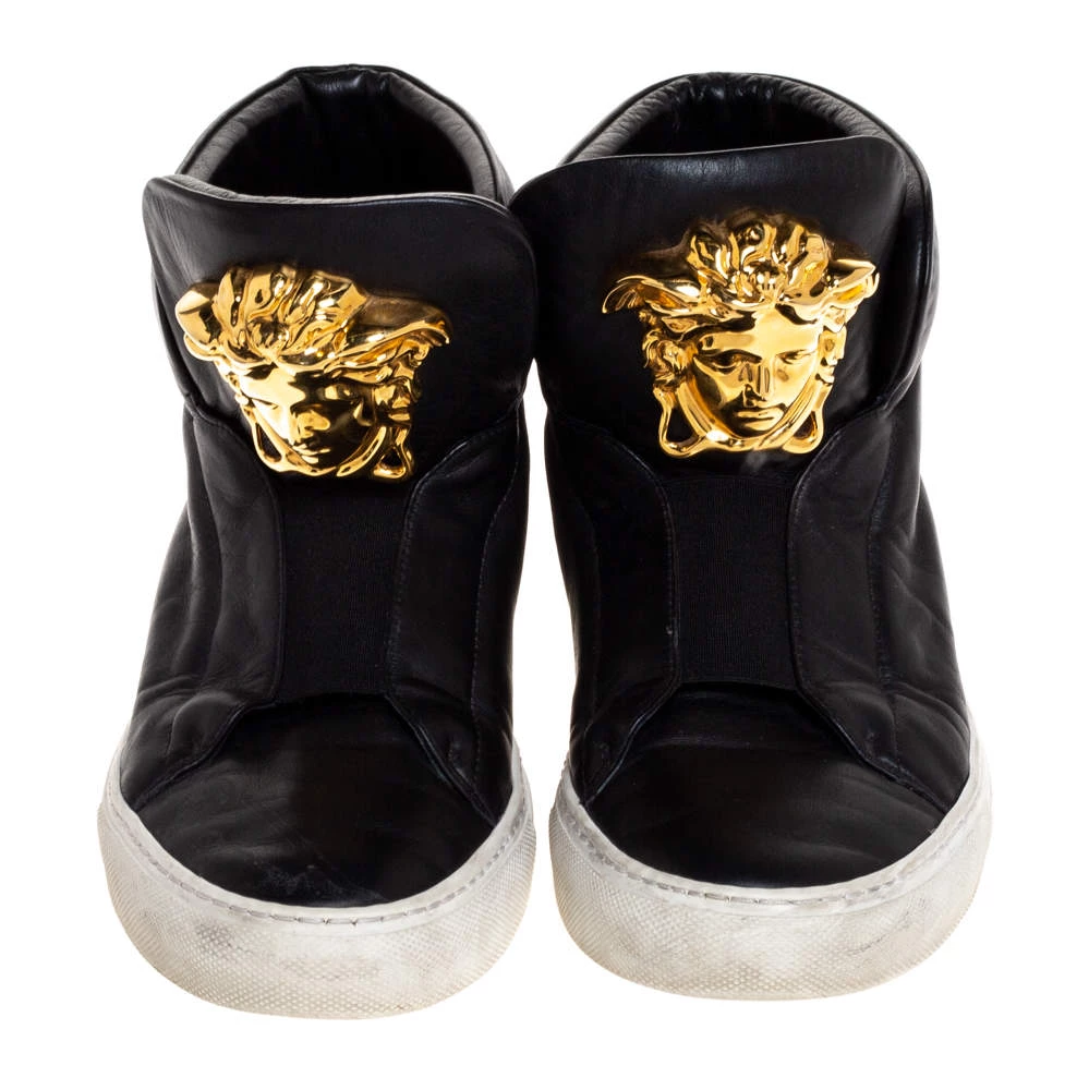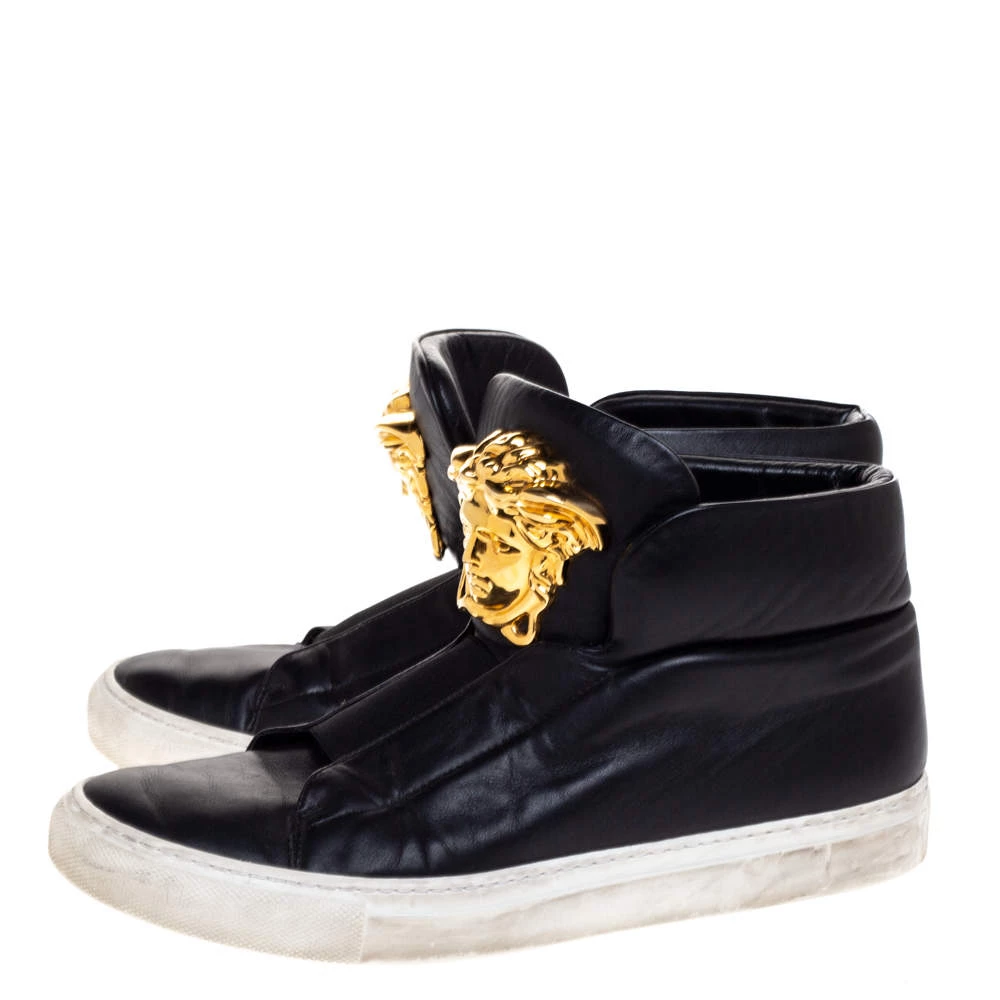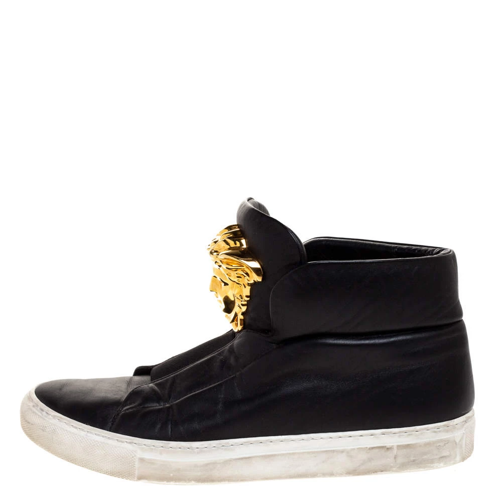 Sneakers are sought-after for reasons like comfort, ease, and casual style. These Versace ones fit right in as they are stylish and snug. They come crafted from black leather into a design of elastic panels and the Medusa logo on the front. They are finished with rubber soles.