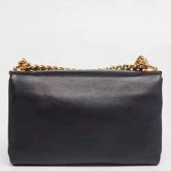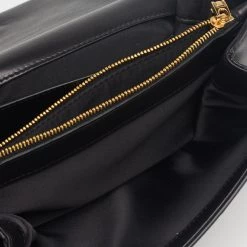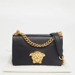 Make a striking appearance with this fashionable Palazzo Sultan shoulder bag by Versace. This elegant creation is at once a fashion statement as well as a rational necessity. It is crafted from black leather, with a Medusa motif placed on the front. This bag is completed with gold-tone hardware, a satin-leather interior, and a 58 cm shoulder chain.
