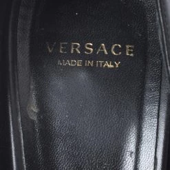 Treat your feet to the best by choosing these durable pumps from Versace! The black pumps have been crafted in Italy and made from quality leather. They are designed to deliver subtle glamour and sophistication. They come with peep toes and the signature Medusa detailing in gold-tone on the 10.5 cm heels. Grab these beauties now!