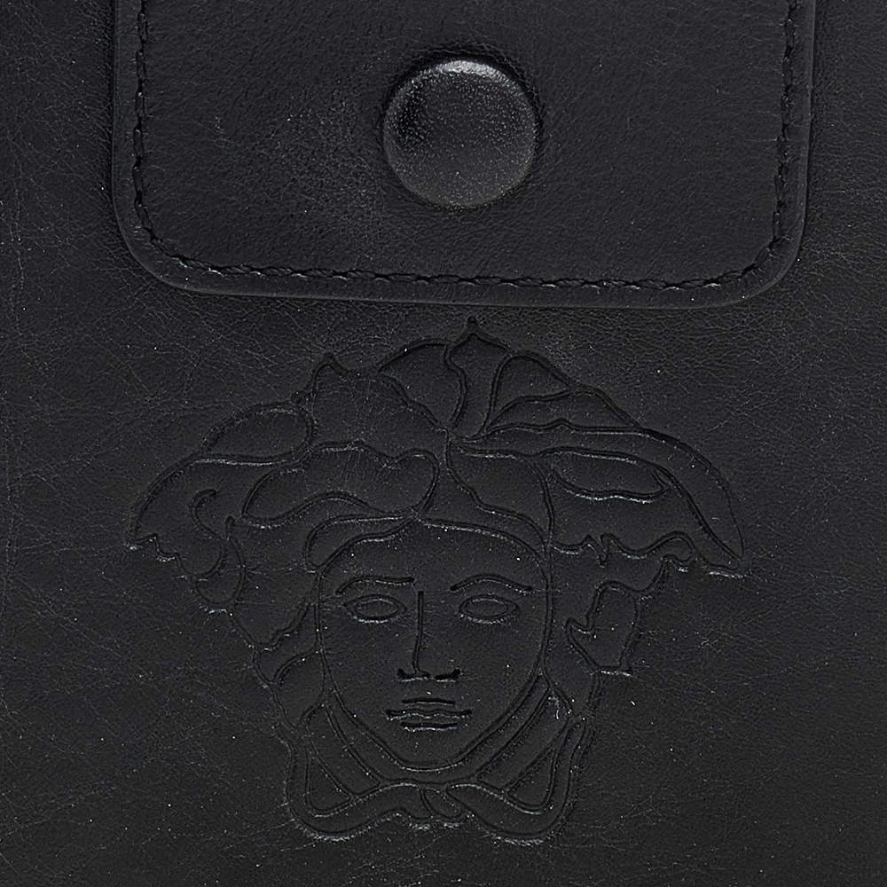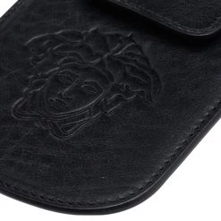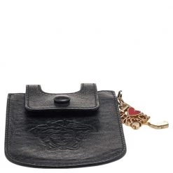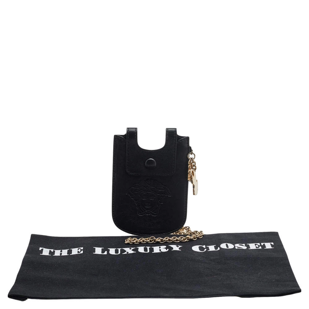This phone holder from Versace is a functional style accessory. Crafted from durable leather, it comes with a lined interior to store your phone and other essentials like cards and cash. It is complete with a chain.