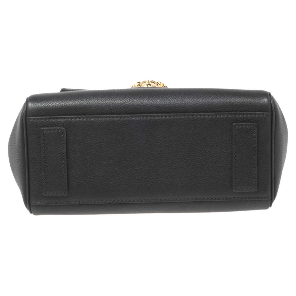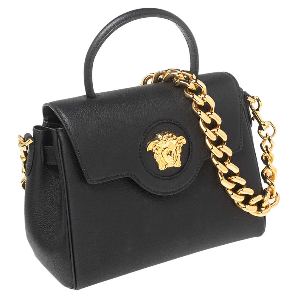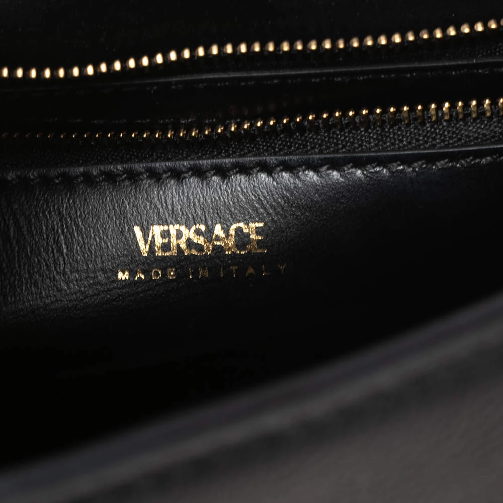 With this stunning bag, the House of Versace introduces a stylish piece of accessory, perfect for every woman. On the exterior, the tote features black leather, a top handle, and a gold-tone Medusa motif. It equips a spacious leather-lined interior, which can house your belongings safely.