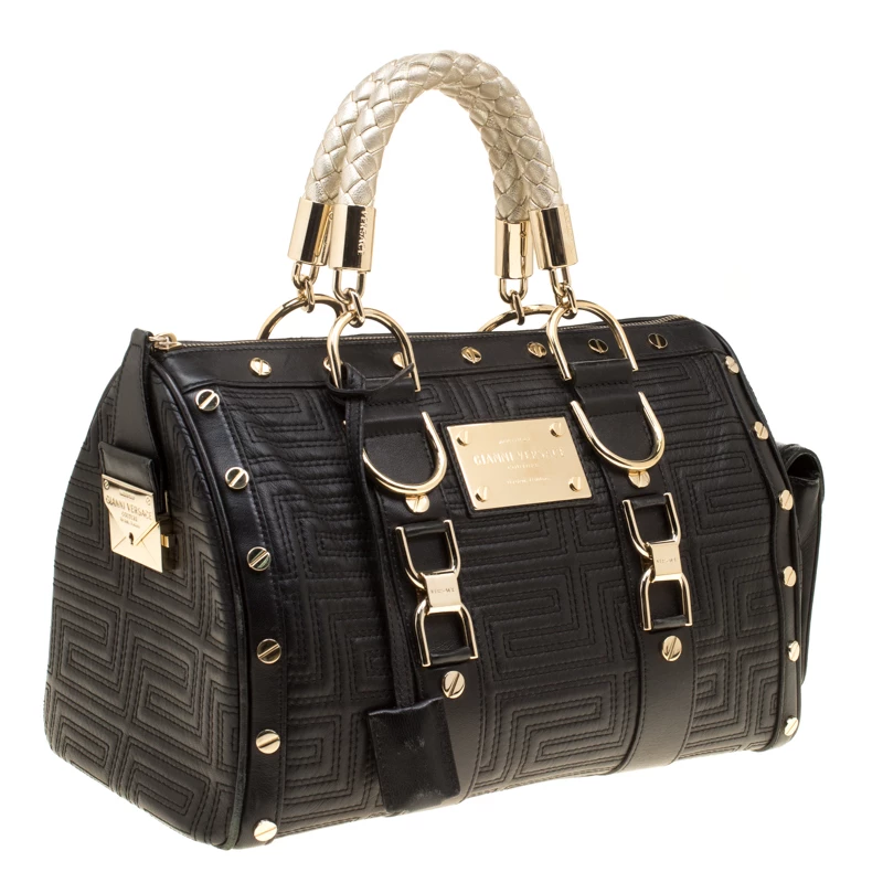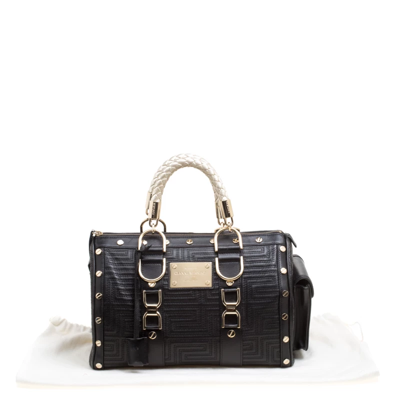 How gorgeous is this satchel from Versace! It carries an outstanding design and a fabulous interplay of leather and gold-tone hardware. It has a top leading to a satin interior while being held by two top handles. The quilts and the brand logo on the front just uplift its beauty and makes it a buy you will not regret.