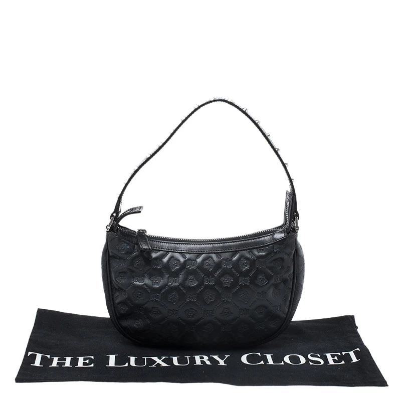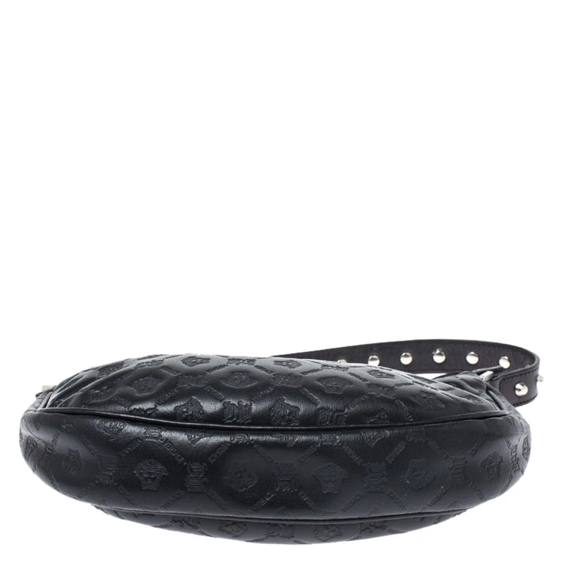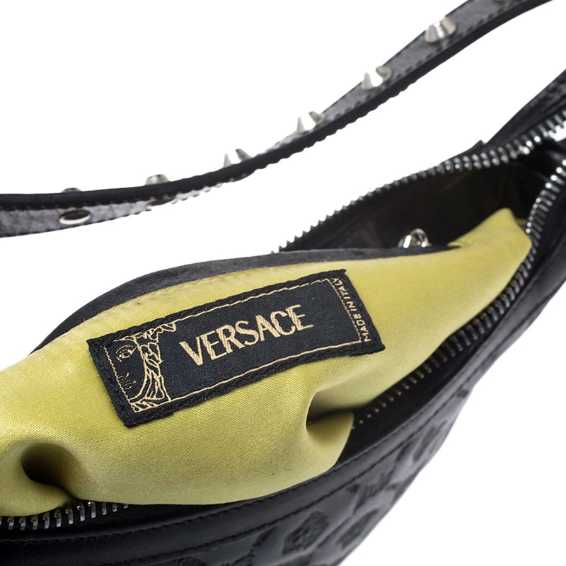 This beautifully fashioned leather bag will surely fetch you a lot of admiration. This piece has a single handle and an ideally-sized satin interior. You are sure to love this absolutely stylish accessory from Versace.