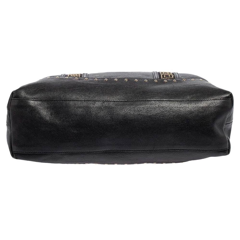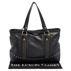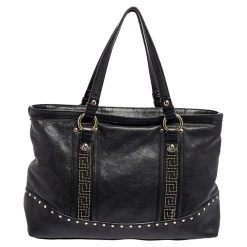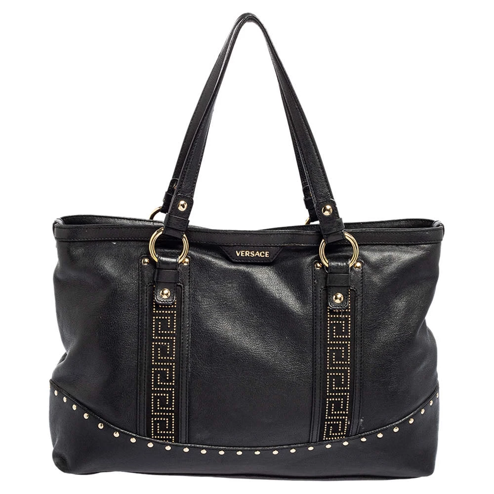 This beautifully stitched leather tote is by Versace. With a capacious satin-lined interior, it will house more than your essentials. Boasting two handles, metal stud details, and a fine finish, this tote offers style and practical ease.