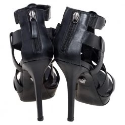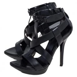 These Versace sandals are crafted from leather and feature a lovely silhouette accented with strappy uppers, a zipper fastening on the counters, platforms, and high heels. They flaunt a tonal Medusa motif on the ankles. Pair them with shift dresses for your fashionable outings.