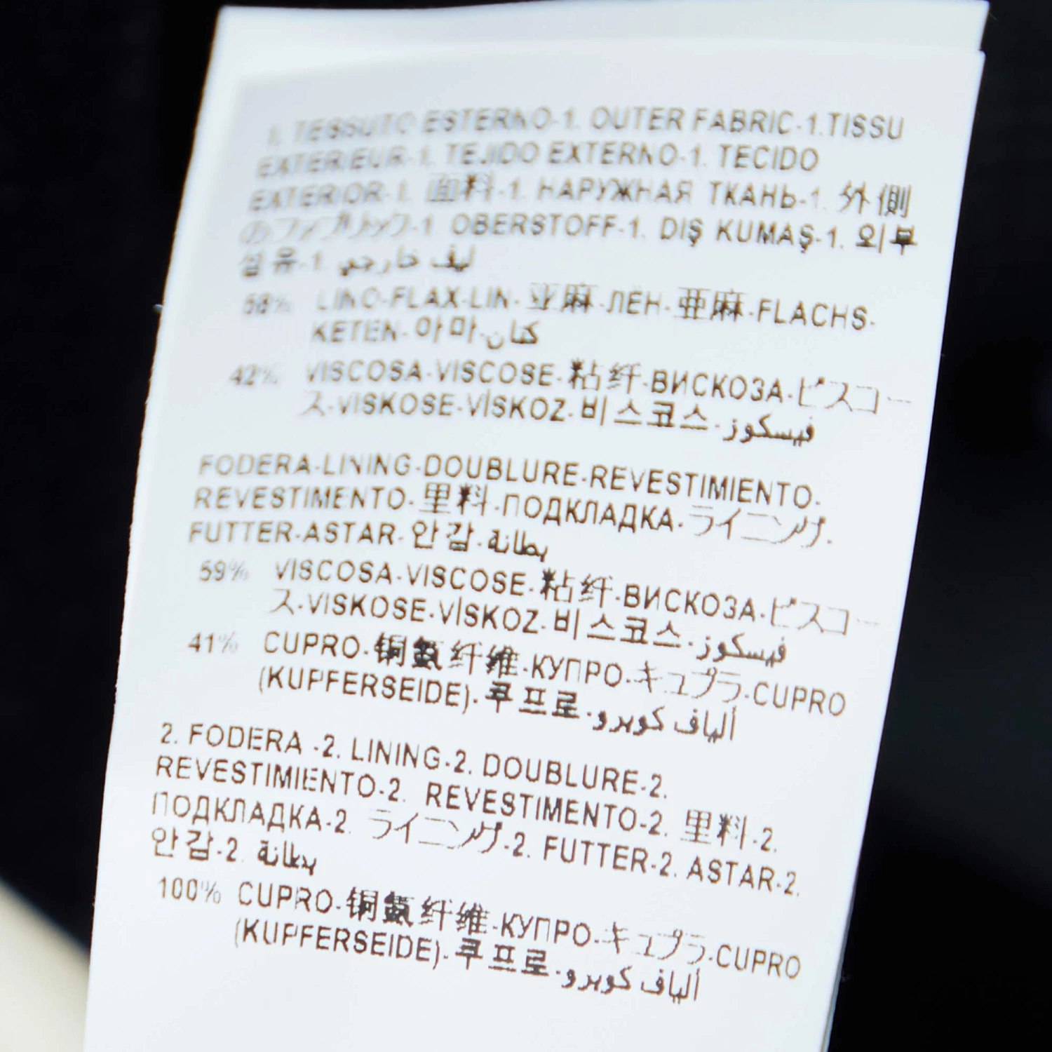 - Composition: Shell: 58%Linen, 42% Viscose ; Lining 1: 59% Viscose, 41% Cupro ; Lining 2: 100% Cupro