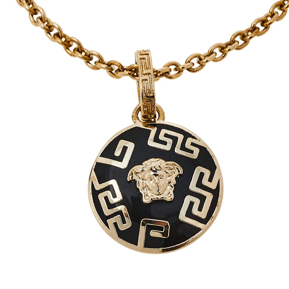 Accessorize your bold looks with this engaging and striking bracelet from Versace. The piece is crafted from gold-tone metal and features the brand’s signature Medusa pendant in enamel. It comes with a chunky interlocking chain and a lobster clasp.