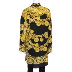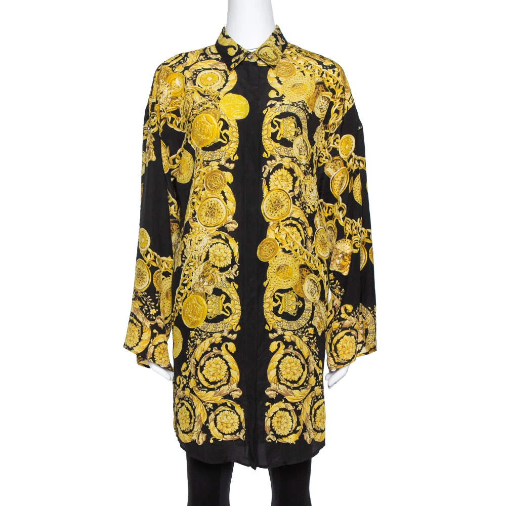 Crafted in silk, this shirt exemplifies Versace’s signature elements in a bold yet luxe way. The shirt feature button closure, long sleeves and Barocco prints in gold over black.