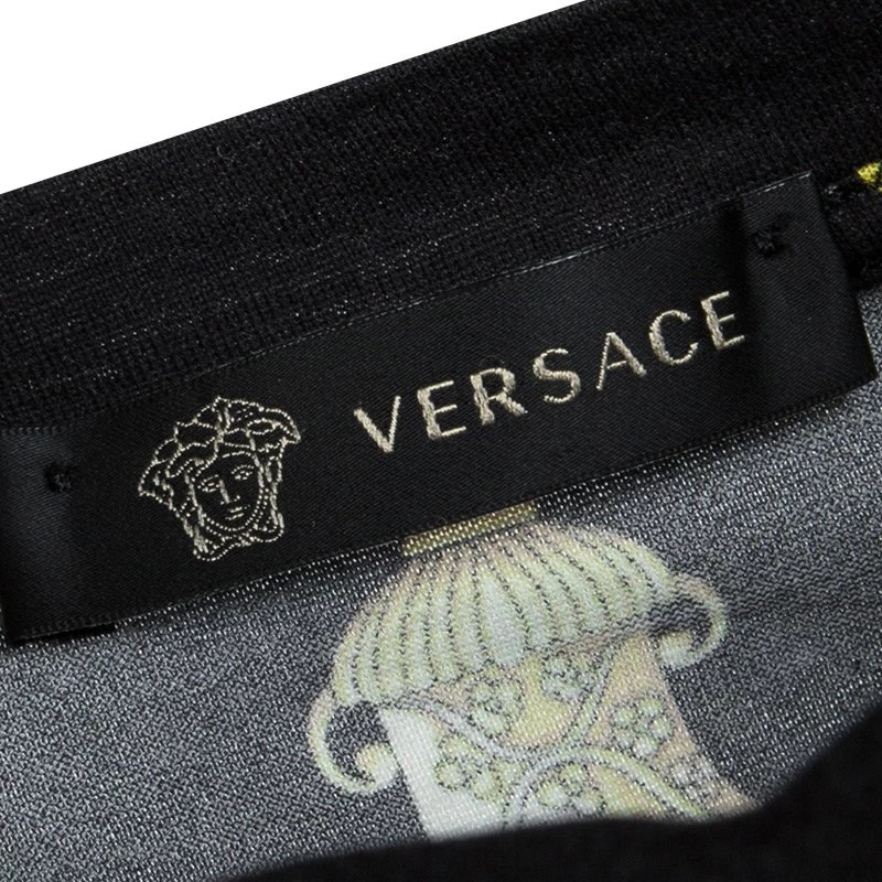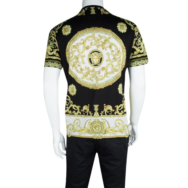 To make you look smart and on point with style, Versace brings you this black T-shirt that comes with a crew neck, short sleeves, and signature prints all over. You can team it with a pair of jeans and leather loafers.
