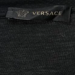 Versace brings you a simple t-shirt elevated by logo and Medusa prints on the front. It has been tailored from cotton in a black shade and features short sleeves. Style the creation with sneakers and denim pants for a cool and casual look.