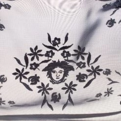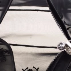 This Versace bag definitely is a stunner in terms of its appeal and craftsmanship. Created from mesh, the exterior of the bag has pretty floral details all over its see-through spread with their brand logo on the front. The bag is well-sized for sufficient carriage and it is complete with a shoulder strap.