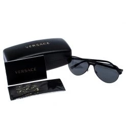 The aviator sunglasses by Versace have a distinct look that makes it glamorous and stylish at the same time. Flaunting a smart design with acetate and metal construction, this aviator is paired with black lenses to add a chic appeal and resist sun rays.