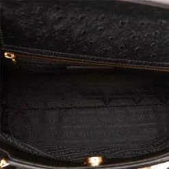 From the ethereal designs of Versace, this Ostrich leather tote would certainly attract your attention. Crafted in black embossed leather, it features double flat handles with gold-tone details. The magnetic closure followed by a zipper closure opens to a fabric lined interior and has a zipper pocket.