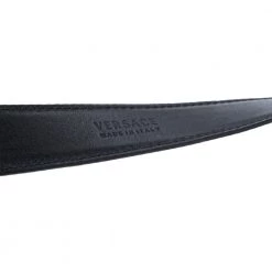 Every wardrobe deserves a statement belt and what better than this Versace one! The black leather body is complemented by a gold-tone Medusa logo buckle. The belt has a single loop and will be an amazing accessory to pair with dresses and pants.